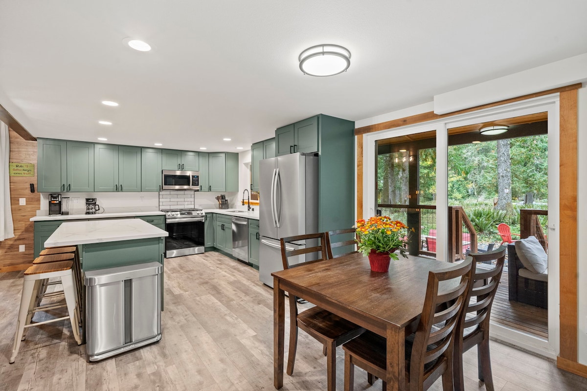 ✨ Réveillez-vous avec une vue sur la forêt, des cerfs dans la cour et à quelques minutes seulement du pays des merveilles enneigé du mont. Parc national du Mont Rainier. Après les aventures hivernales, réchauffez-vous dans le jacuzzi ou le sauna, ou allez à la salle de sport privée. Profitez de la cuisine extérieure, puis rassemblez-vous autour du brasero pour des nuits de vacances douillettes 🔥. À l'intérieur, détendez-vous avec un bar à café, une cuisine complète, le Wi-Fi, la climatisation, la télévision et un lave-linge/sèche-linge. L'escapade hivernale idéale en famille ! 🌲❄️🦌✨