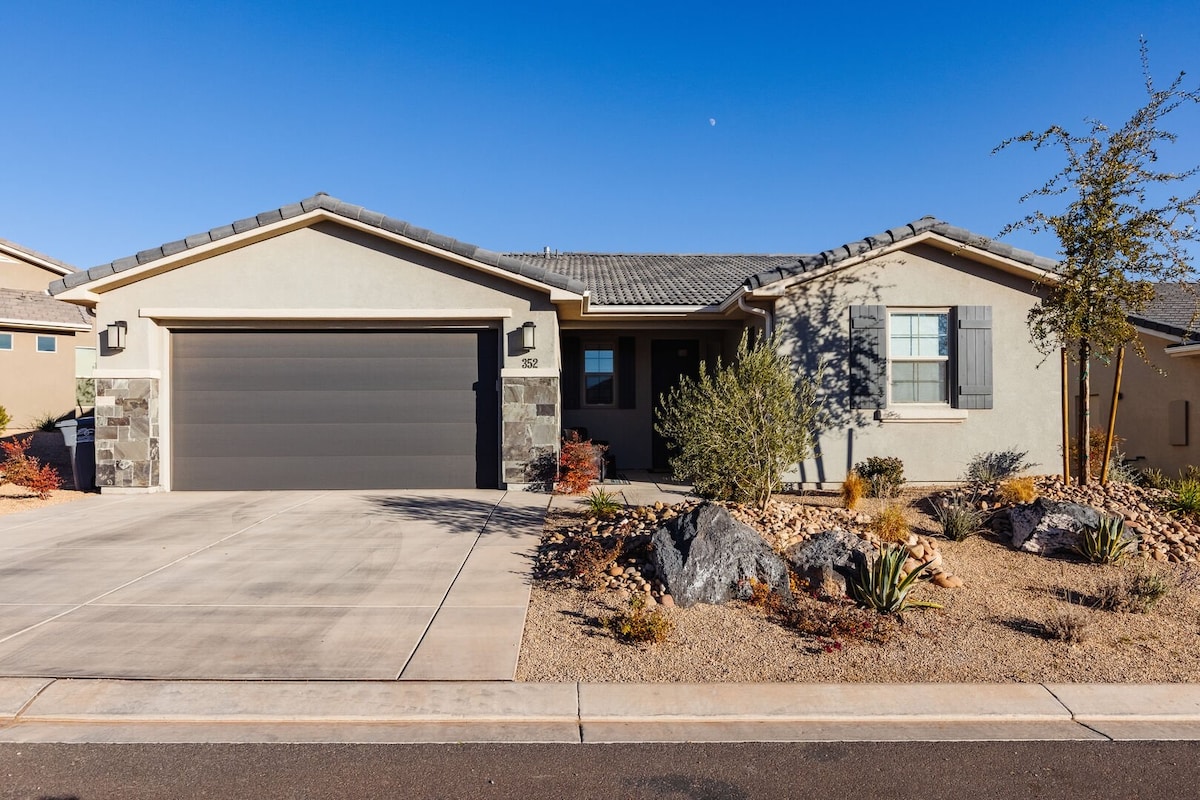 Canyon Rest est votre maison loin de chez vous. Toute la maison est à vous, y compris un patio privé à côté de la cuisine pour une vie en plein air prolongée. Vous disposez d'un jacuzzi, d'un foyer à gaz, d'un barbecue et d'un immense parasol pour un séjour relaxant entre amis ou en famille. Rafraîchissez-vous dans la PISCINE qui se trouve à quelques pas dans la communauté. Cet endroit est tellement génial que vous ne voudrez peut-être pas partir. Nous sommes près du parc national de Zion et de Snow Canyon. Il y a des pistes cyclables et de beaux terrains de golf tout autour.