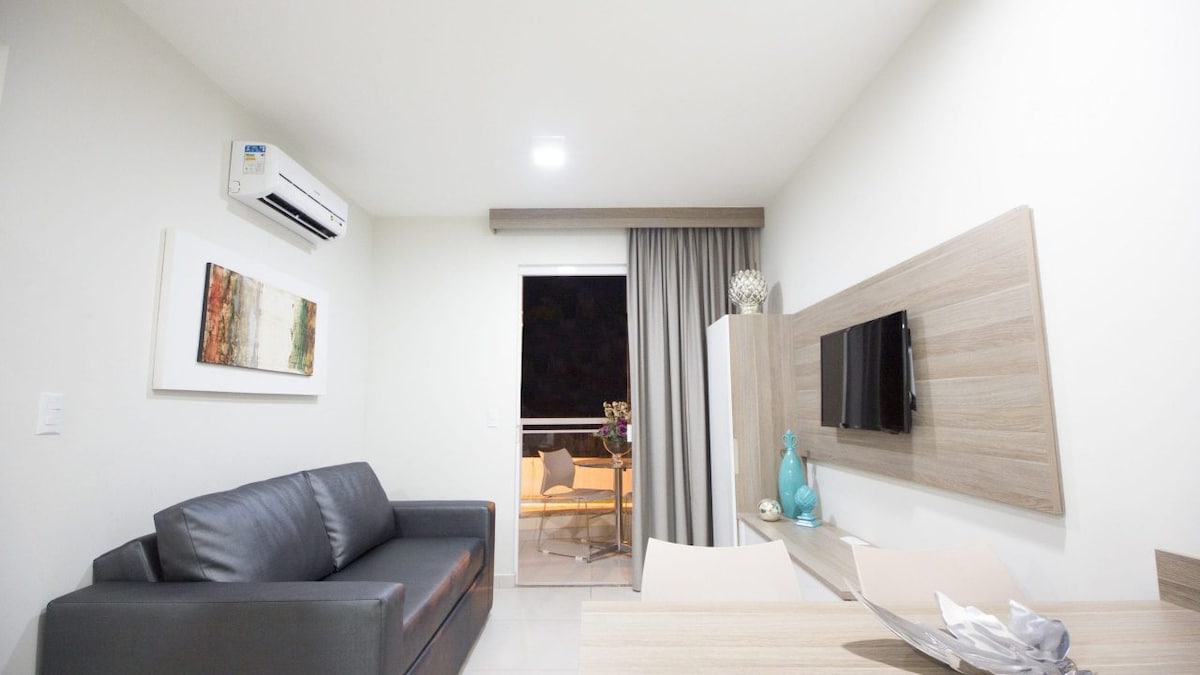 Appartement dans le complexe touristique Golden Dolphin Grand Hotel. - Super bien situé, dans le centre-ville. - Le séjour vous permet de fréquenter l'espace commun des hôtels Golden Dolphin Express, Grand Hotel et Supreme (piscines ouvertes 24h/24). - Peut accueillir jusqu'à 4 adultes et 1 enfant jusqu'à 5 ans. Saisissez le numéro correct sur la réservation. OBS : Les frais de ménage ne comprennent pas le linge (linge de lit et de bain). Si vous souhaitez le trousseau complet de l'hôtel, nous pouvons le réserver moyennant des frais supplémentaires de 30,00 R$ par séjour.