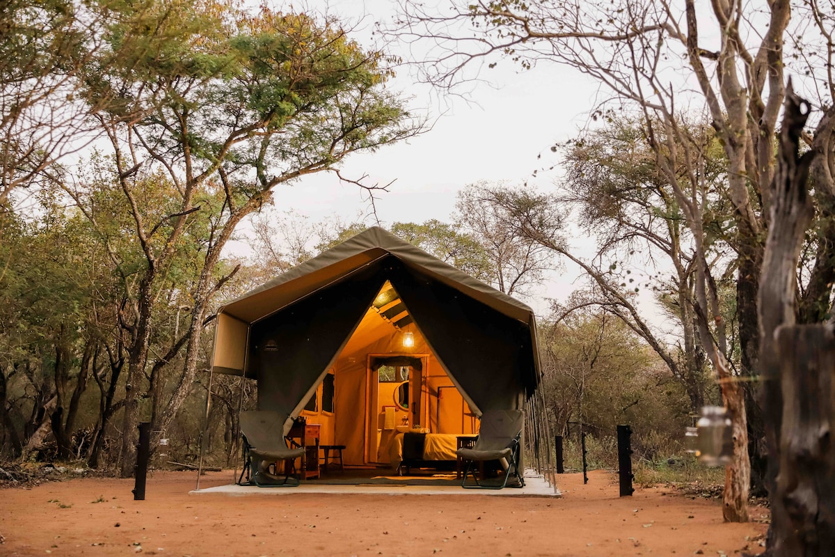 Tente isolée de Waterwood, pour l'amoureux de la brousse reclus. Cette tente isolée plaira à l'aventurier passionné de nature. Profitez de la liberté de la brousse, que ce soit à pied ou en VTT. Détendez-vous sur la terrasse ou asseyez-vous autour du foyer tout en regardant le jeu défiler. Des lumières solaires et une douche chaude sont quelques-uns de vos conforts limités, en tant qu'amateur de brousse. Réponse Covid 19, tout notre personnel est vacciné et la tente est complètement isolée. Il n'y a aucun contact avec les autres voyageurs.
