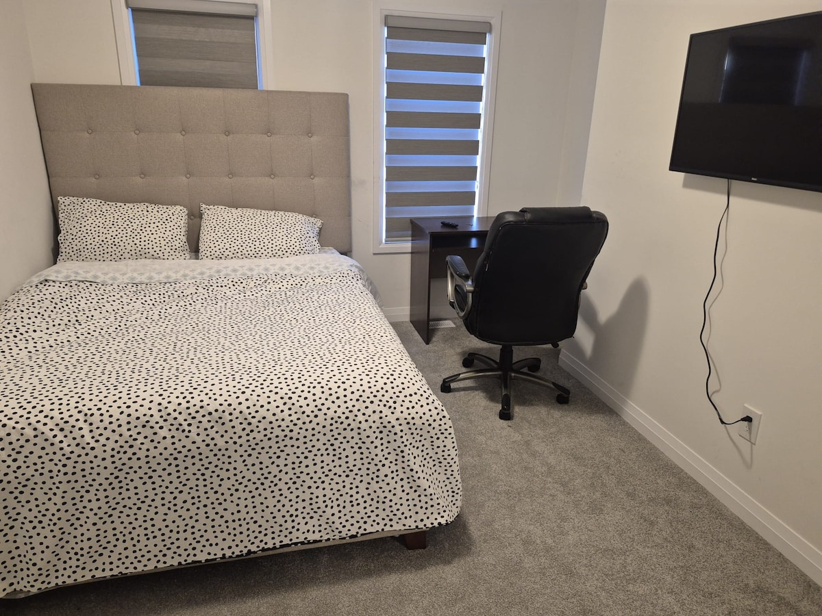 Propre, confortable, chaleureux appartement de sous-sol privé récemment rénové avec entrée séparée et parking. La chambre principale comprend une télévision de 42", un lit queen size avec un nouveau matelas/sommier et toute la literie nécessaire pour un sommeil confortable. La deuxième chambre contient un nouveau futon. La cuisine/salon est un concept ouvert avec une nouvelle télévision 43". La cuisine est propre, moderne et contient toutes les nécessités pour préparer tous les types de repas.