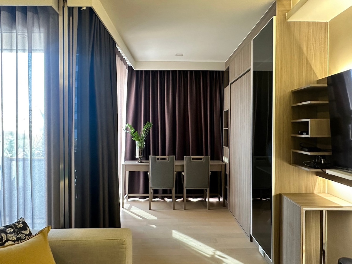 A fully furnished condo with 1 bed room kitchen, and balcony with nice view. Facilities. Security 24/7, Indoor Gym, Swimming pool, Sauna, Rooftop garden Amenities Located near BTS Ekkamai & Phrakanong. Connecting with Sukhumvit road, with easy access the city center and night life spots like Thonglor, Phrom phong. Close to MRT Queen Sirikit for riverside trips. And surrounding with divers dinning options and top malls like Gateway Ekkamai, EmSphere, Terminal21, One Bangkok.