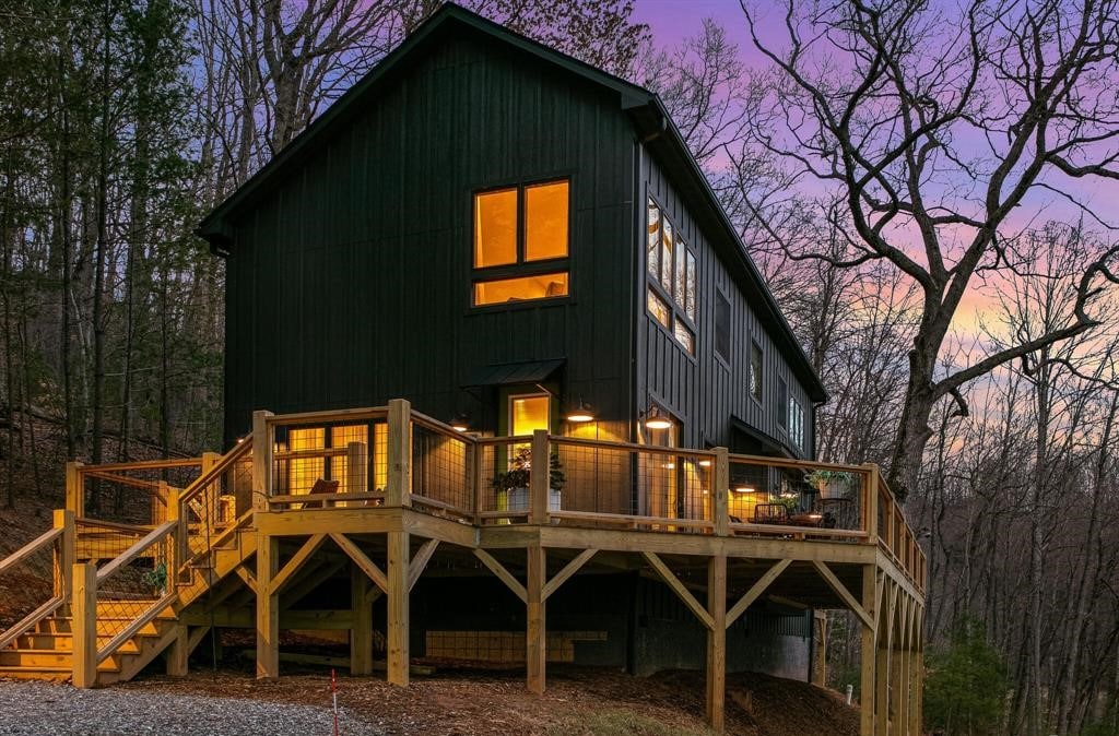Private, pet and family-friendly luxurious cabin on the edge of a working farm—just a mile’s stroll from downtown Waynesville. Handcrafted new construction by your host with reclaimed barn-wood floors predating the constitution. Enjoy peaceful farm walks, mountain views, and a 1,000 sq ft gated deck (covered + open) with a connected fenced yard. Inside has a spacious walk-in shower and warm Appalachian aesthetic. E-bikes available to rent for easy rides to town and trails. Relax and recharge!