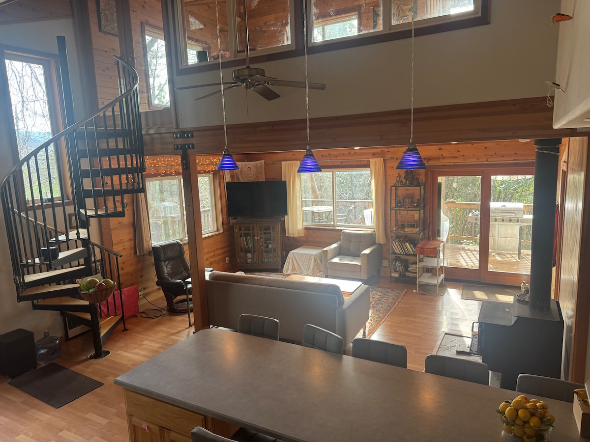 Cabane de montagne unique construite sur mesure disponible pour le télétravail, la randonnée, le VTT, le rafting, la pêche ou la retraite. À cinq minutes de la rivière Trinity et à 5 minutes d'un centre de retraite de méditation local. Le wifi rapide et stable prend en charge plusieurs appels Zoom. Chargeur pour véhicule électrique haute capacité de niveau 2 - 40 ampères installé dans l'allée. Propriétaires d'animaux, veuillez noter : il y a du sumac vénéneux dans la cour, donc les animaux ne devraient probablement pas se promener librement. Il y a une petite enceinte clôturée sans sumac vénéneux.