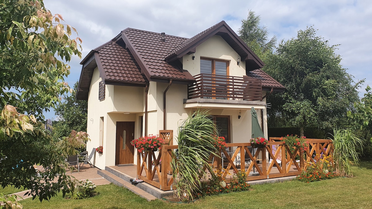 Two houses located on a green plot in Mieroszyno, featuring air conditioning, kitchen equipped with a dishwasher, induction hob, and a large refrigerator. The terraces are furnished with furniture and gas grills. Guests have access to a wood-fired jacuzzi and sauna, sun loungers, hammocks, and a fire pit, sports field to play badminton or volleyball. For children- a playground with two zip lines — one of them 40 meters long — swings, and more. It’s a great base for cycling and hiking trips.