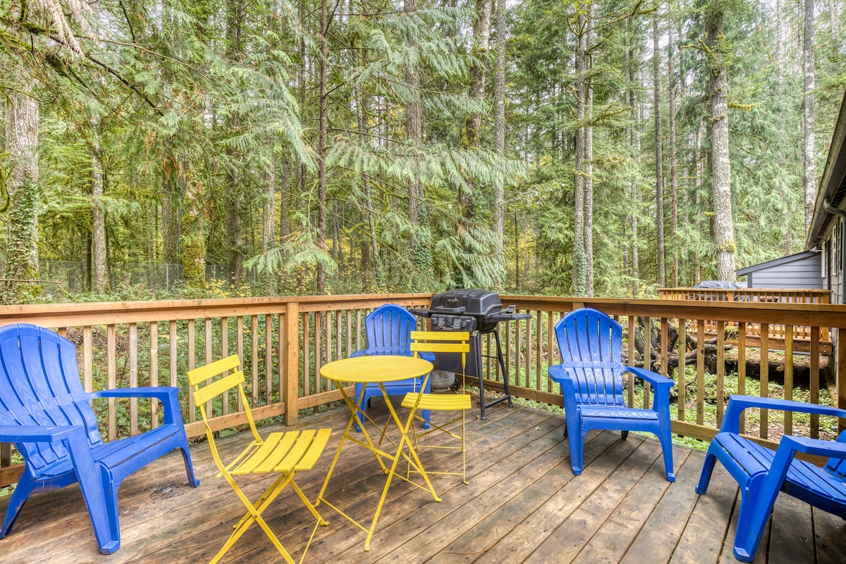 Venez au Huckleberry Getaway. Nichée au milieu d'hectares de forêts luxuriantes de conifères à l'entrée du mont Hood, cette location de vacances pittoresque se trouve juste sur le parcours de golf Three Nine's. Elle est proche des rivières, des lacs, des sentiers, des zones de loisirs, des zones sauvages et de la forêt nationale du mont Hood. C'est l'endroit idéal pour tout amateur de plein air. Quoi que vous vouliez faire, tout est là pour que vous en fassiez le voyage de votre vie. Tout est là pour que vous profitiez de votre séjour au Huckleberry Getaway !