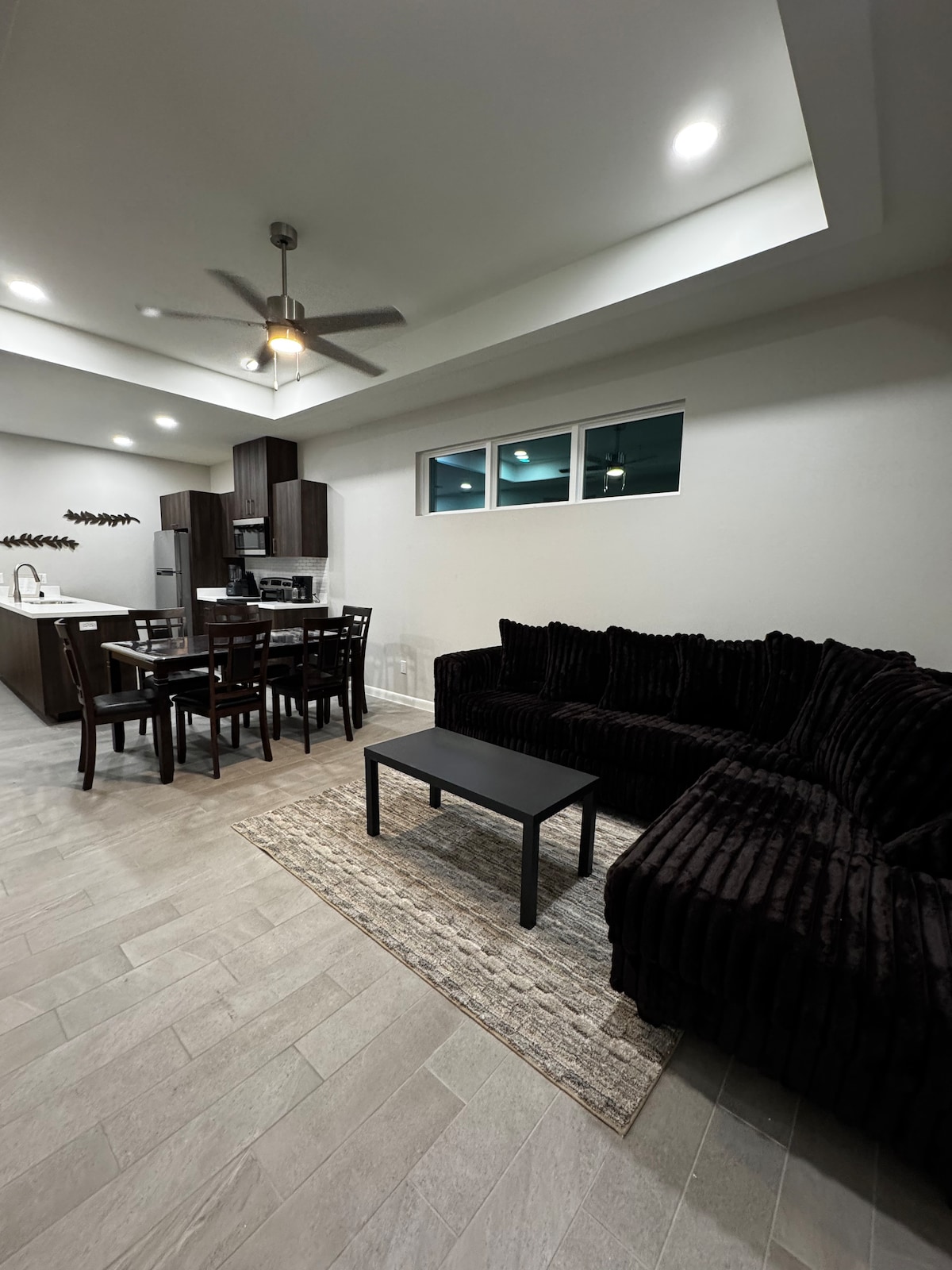 Enjoy your private suite designed for comfort and productivity. Enjoy two full bathrooms, a private office for remote work, and a stylish open living space ideal for short or extended stays. Perfect for professionals seeking peace, privacy, and convenience. It's a four-minute drive to the expressway.