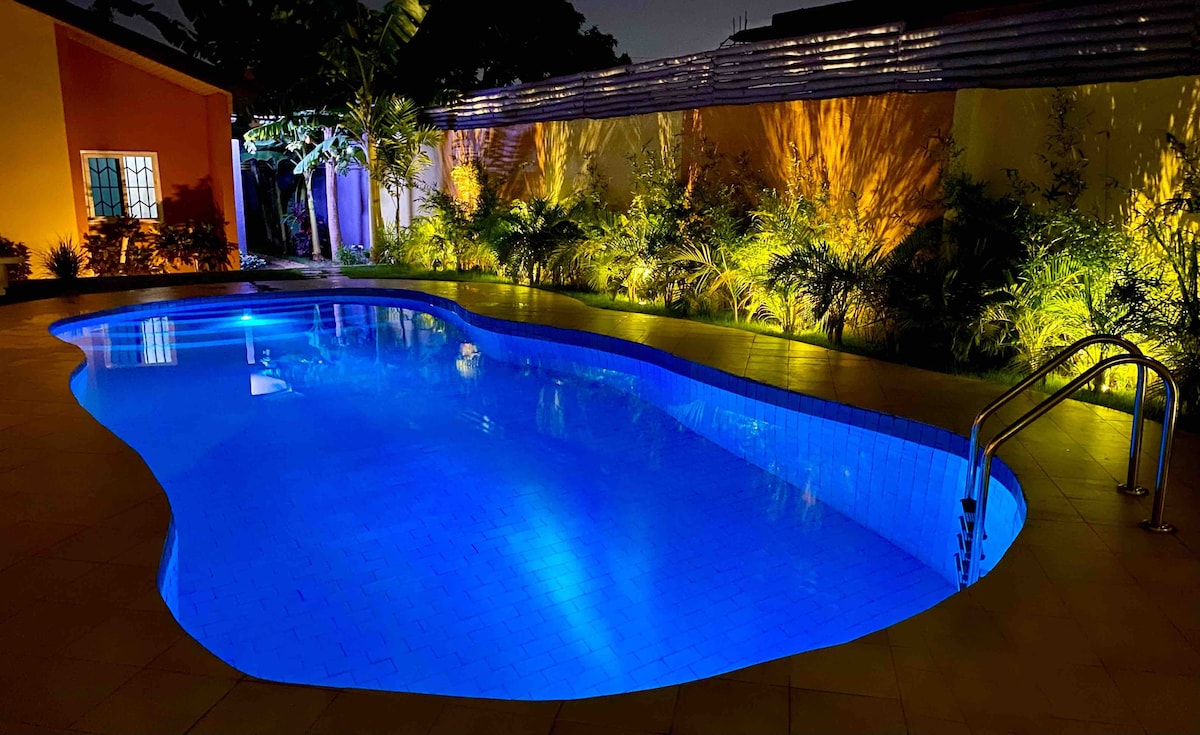 Bienvenue dans une expérience unique ! Si vous êtes à la recherche d'un bel endroit avec une touche de luxe, quelque chose d'intelligent et d'élégant, avec un magnifique jardin, une piscine, un jacuzzi et une salle de sport, alors ne cherchez pas plus loin. C'est l'endroit idéal pour vous ! Notre appartement est idéalement situé, à proximité des plus grandes attractions d'Accra. Nous sommes à seulement 25 minutes du centre commercial Accra, à 10 minutes du centre commercial Achimota, et vous pouvez rejoindre la plage en seulement 30 minutes. Nous sommes facilement accessibles depuis l'aéroport, à seulement 11 km.