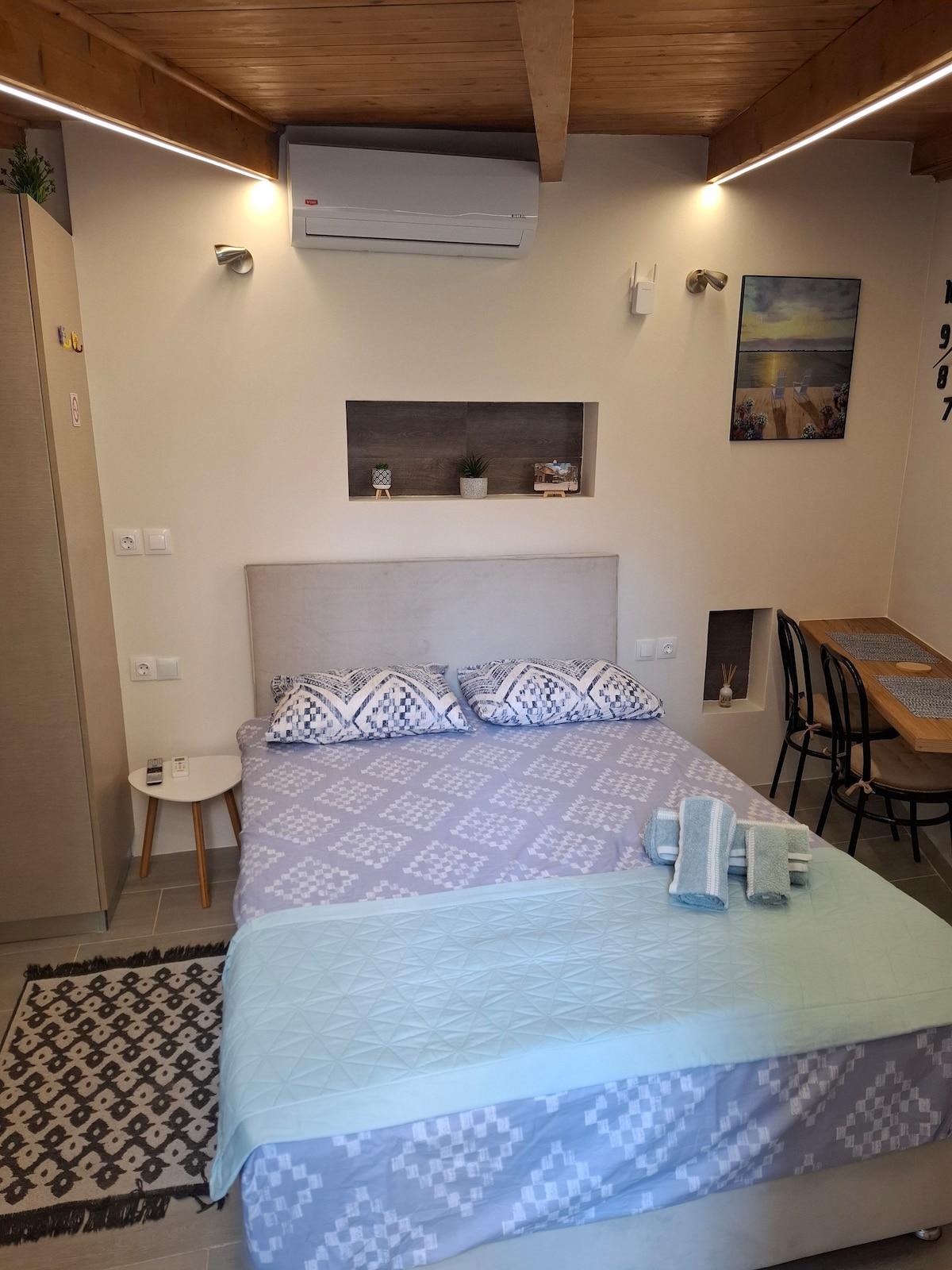 Small but yet cosy room with the basic amenitites. Fast Wifi, brand new interior and a beautiful garden. 10' min far away from the ancient city and Acropolis.