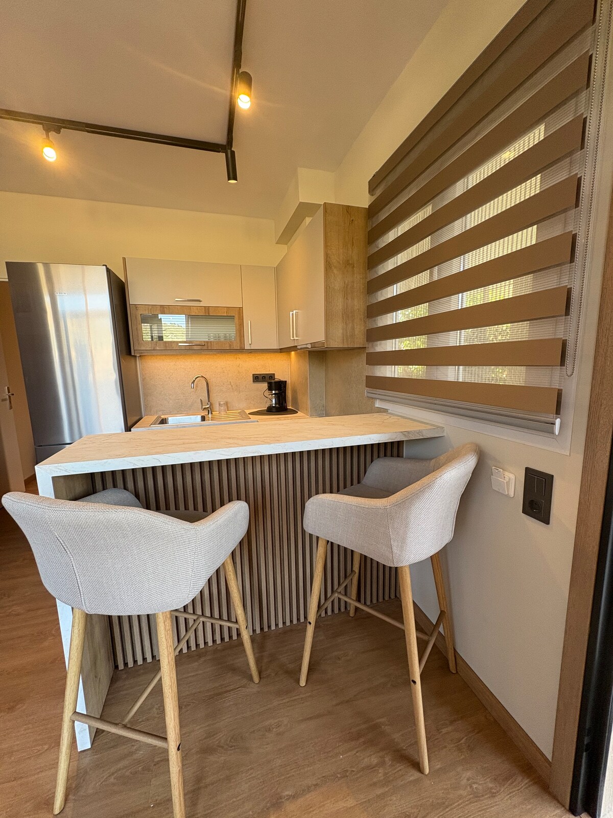 Profitez d'une expérience élégante dans l'un des quartiers les plus animés d'Athènes. Notre appartement d'une (1) chambre entièrement rénové est situé au 4e étage d'un établissement résidentiel offrant une atmosphère chaleureuse, une vue sur l'Acropole depuis le patio et un accès facile aux attractions les plus célèbres de la ville. L'appartement ensoleillé dispose de tous les équipements nécessaires pour les séjours longue durée, le matelas spécial étant le point fort pour un sommeil confortable.