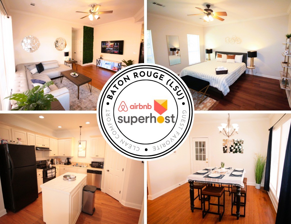 3 chambres/2 salles de bain, près de LSU, 8 personnes, à proximité du centre-ville