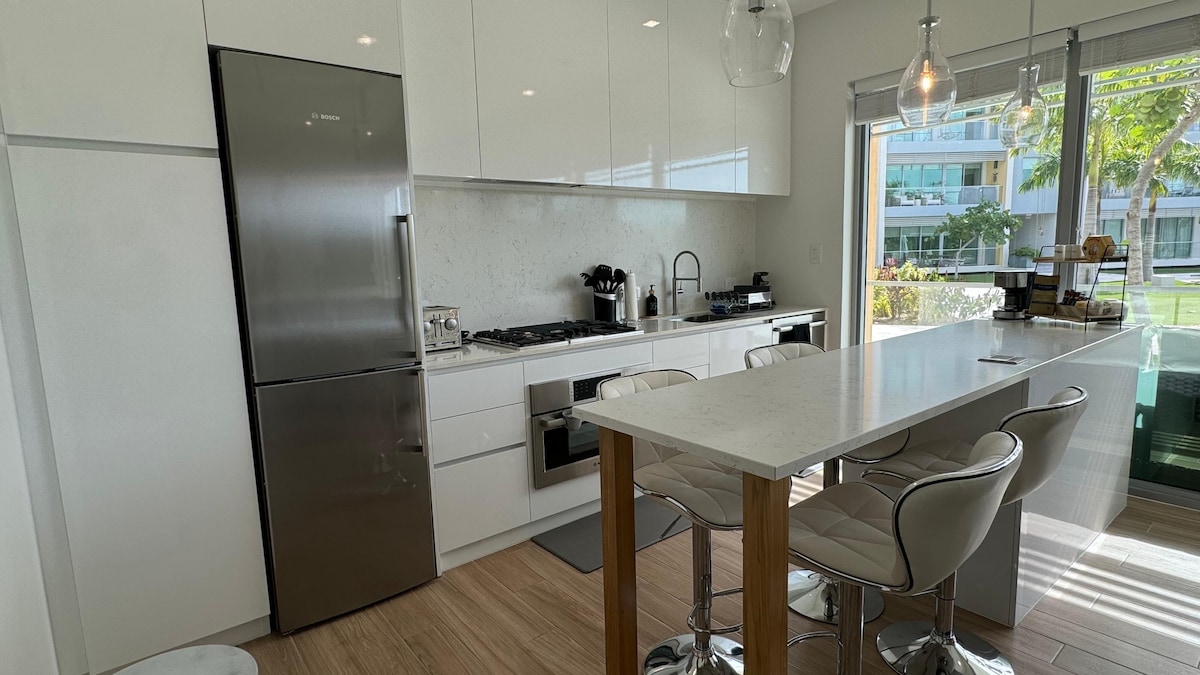 Admirez la vue panoramique sur la mer des Caraïbes depuis ce tout nouvel appartement en bord de mer de 3 chambres et 3 salles de bain à Grand Cayman. Cette retraite de luxe allie design moderne et vie insulaire décontractée. Les portes vitrées du sol au plafond s'ouvrent sur un balcon de 10 mètres face à l'océan, brouillant les pistes entre l'intérieur et l'extérieur. Que vous sirotiez un café le matin en écoutant les vagues ou que vous trinquiez avec des cocktails au coucher du soleil sur la terrasse, cet appartement promet une escapade caribéenne propre, accueillante et luxueuse.