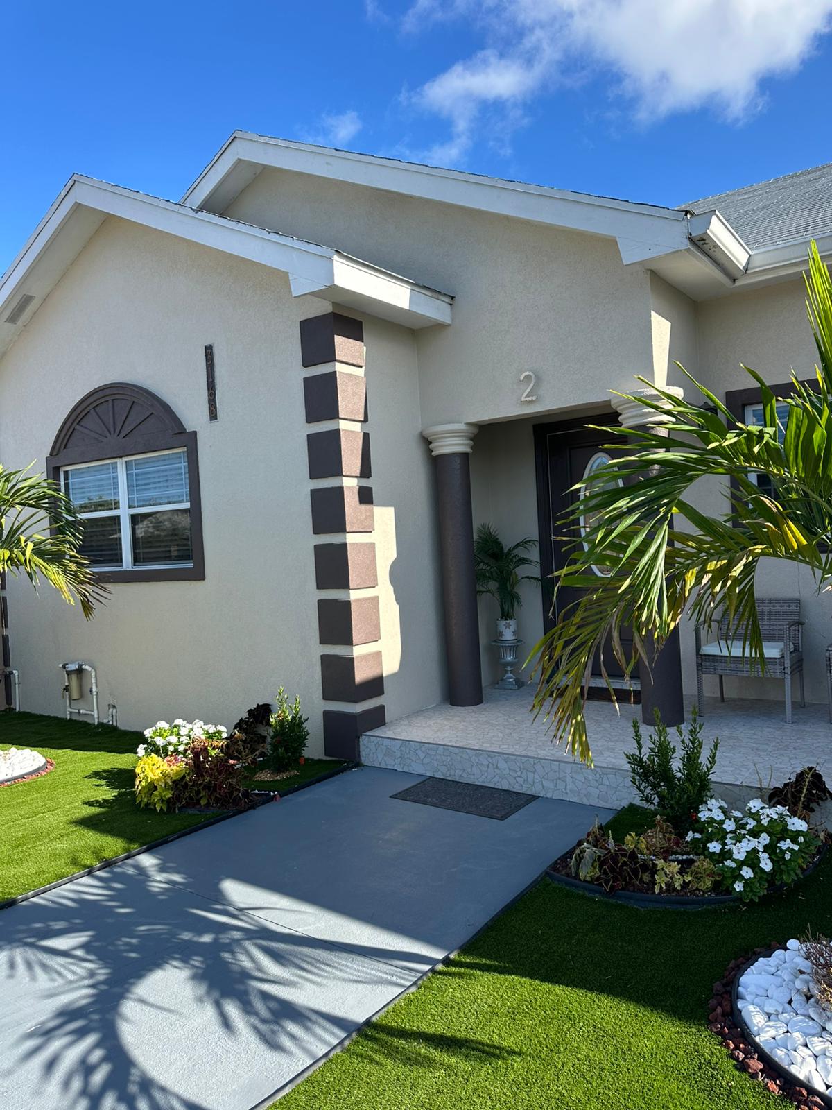 - 3 grandes chambres, toutes avec télévision - Cuisine entièrement équipée avec buanderie, laveuse, sécheuse et placards de rangement - bureau équipé avec ordinateur, imprimante, Internet, bureau et fournitures. - Appels téléphoniques locaux et internationaux illimités - À 150 pas de la célèbre plage de 7 miles beach ; - La maison est livrée avec les serviettes nécessaires, draps, etc. - Proche de toutes sortes de restaurants, certains accessibles à pied - Caméras de sécurité extérieures - La maison peut accueillir jusqu'à 3 matelas gonflables.