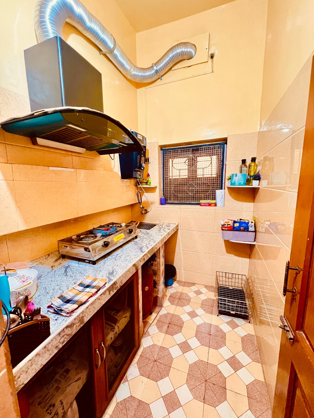 Maison confortable et chaleureuse au cœur de la ville. Nichée dans un quartier calme du sud de Kolkata, cette belle maison offre un mélange parfait de charme ancien et de confort moderne. Détendez-vous en famille dans ce logement paisible. La propriété est située au rez-de-chaussée et à distance de marche du marché de Gariahat. Il est également proche de centres commerciaux importants, de boutiques populaires, d'hôpitaux, de marchés et de restaurants. Il fournit un approvisionnement en eau 24 heures sur 24 et maintient une norme stricte d'hygiène.