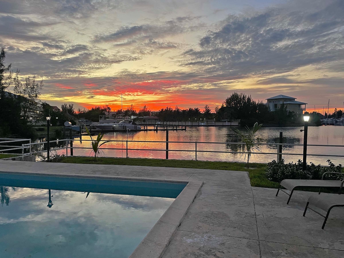 Le séjour parfait aux Bahamas vous attend. Peut accueillir 6 personnes, avec piscine et quais pour bateaux. Parfait pour les plaisanciers et les amateurs de plage. Situé en face de la belle plage de Taino et du canal de Bell pour un accès rapide et direct à l'océan en bateau. Vue sur l'eau sous tous les angles. Observez les tortues de mer et profitez de la brise de l'île depuis le porche arrière privé. Tout est RÉNOVÉ, cuisine entièrement équipée, douches à effet pluie et décoration de l'île. Profitez au maximum de Grand Bahama, des plages de sable blanc, des restaurants incroyables, du marché de Port Lucaya et de la pêche de classe mondiale !