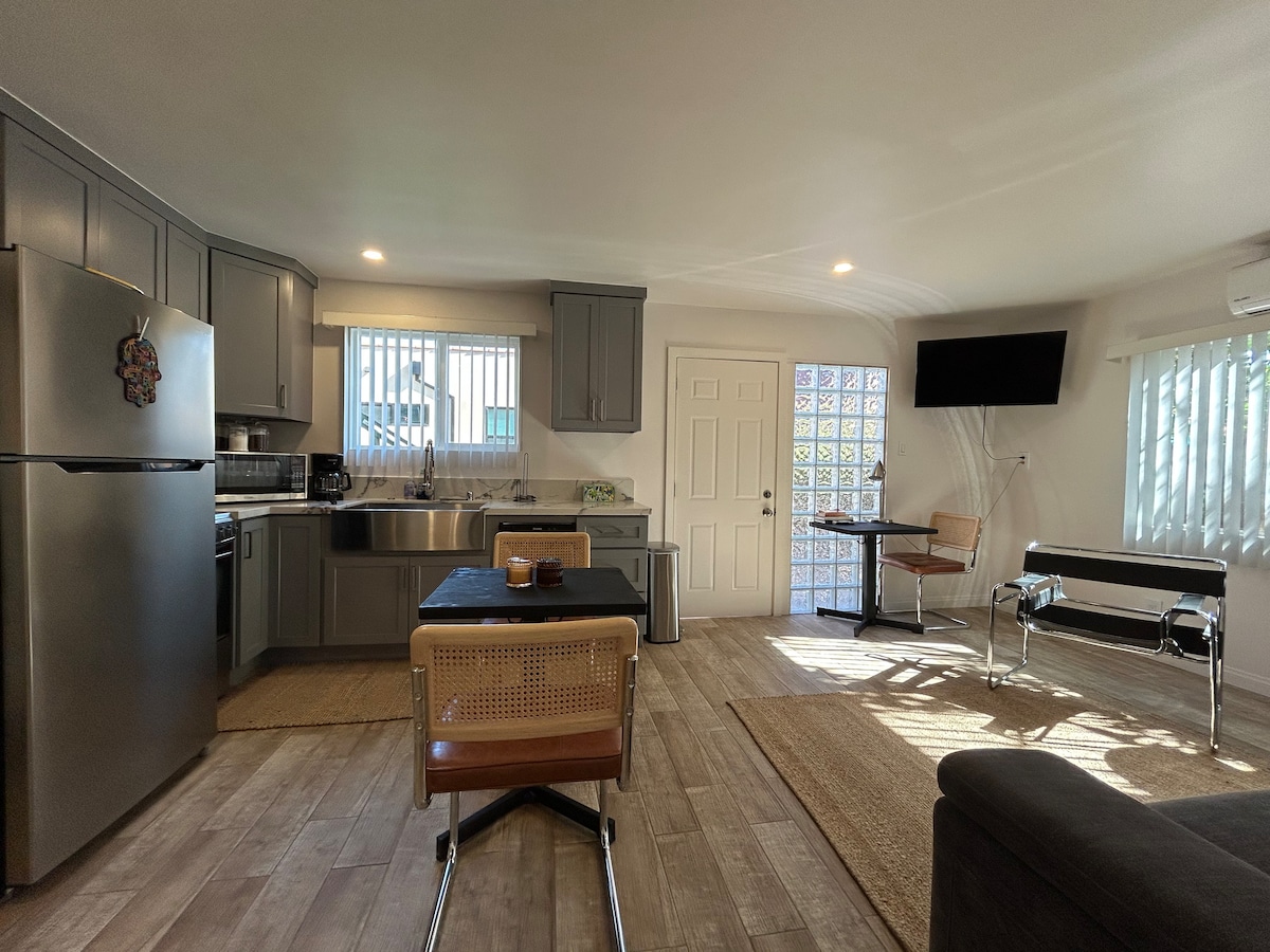 Espace privé calme et élégant entièrement rénové. Situé près du Beverly Center À proximité de la plupart des principaux sites d'attraction de Los Angeles, y compris Melrose, Sunset Blvd, Beverly Hills, The Grove, Santa Monica, Hollywood, West Hollywood et DownTown LA. Ce serait un endroit idéal pour se détendre, travailler si nécessaire et toujours très proche de grands restaurants, cafés, bars, centres commerciaux, marchés. Cet espace N'EST PAS destiné à exercer une ACTIVITÉ COMMERCIALE, y compris en voyant des clients/clients ou en fournissant un service.