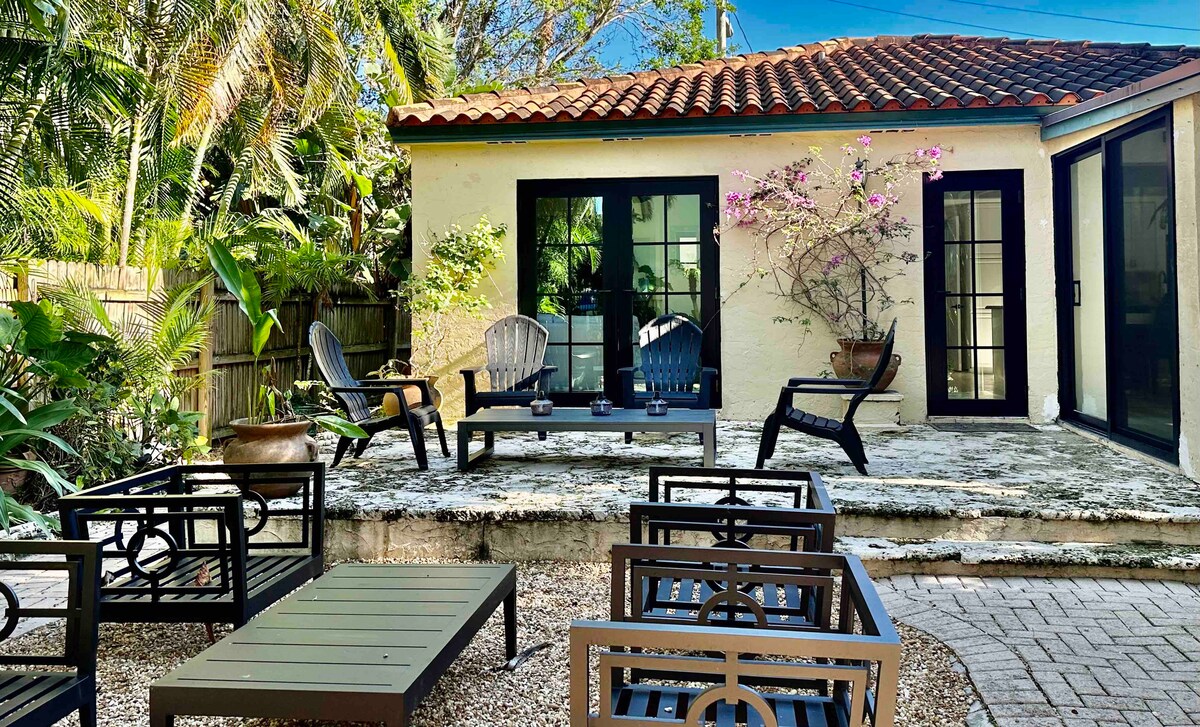 Détendez-vous dans ce logement unique et tranquille. Le Mango Groves Beach Bungalow est un charmant joyau tropical historique caché au cœur de la plage artistique de Lake Worth. Tout juste rénové, ce logement immaculé d'une chambre et d'une salle de bain est lumineux, spacieux et super confortable avec une belle cour pour profiter du soleil. À 15 minutes à pied ou 5 minutes à vélo de la plage. Profitez d'une pléthore de nourriture et de vie nocturne incroyables à quelques pas. Gril, foyer, vélos de plage, buanderie et plus encore !