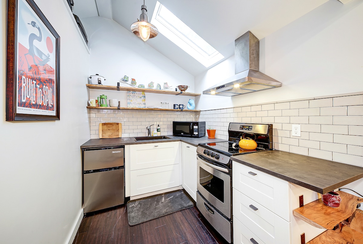 Notre loft de deux chambres est lumineux avec de hauts plafonds et un plan d'étage ouvert. Sentez-vous comme chez vous avec une cuisine entièrement équipée, une connexion Wi-Fi haut débit, des couvre-lits en plumes confortables et des serviettes de qualité hôtelière. Détendez-vous devant la cheminée ou sur la terrasse avant privée en profitant du soleil du matin. Proche des restaurants, de la plage, du ferry de Vashon, du centre-ville de Seattle et à 20 minutes en voiture de l'aéroport de Seatac.