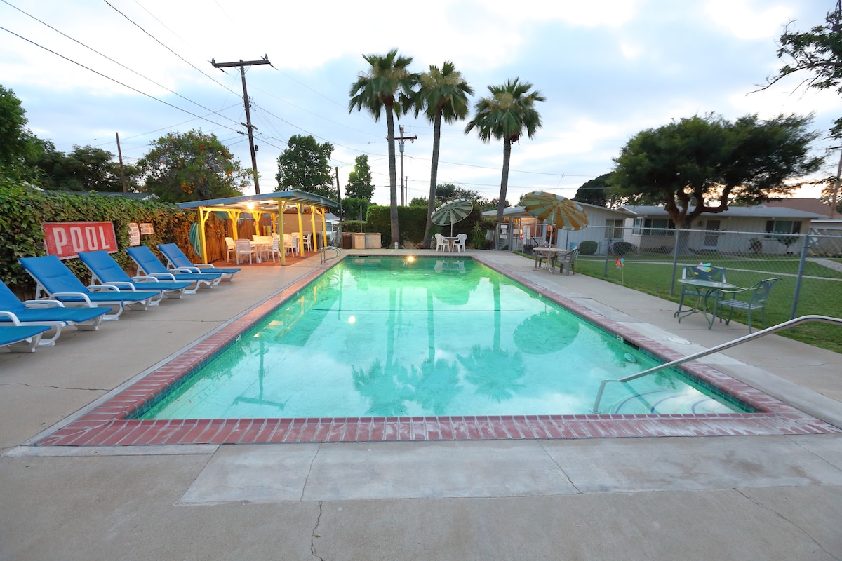 Allez-y doucement lors de cette escapade tranquille spéciale. Espace chaleureux et accueillant avec sa propre entrée sur le terrain d'une maison du milieu du siècle. Notre bungalow californien classique offre un cadre relaxant de type spa entouré de verdure tropicale luxuriante et d'arbres fruitiers. Profitez de la proximité de l'historique Uptown Whittier et des sentiers de randonnée pédestre. Détendez-vous dans les hamacs ou buvez votre café dans le patio tout en profitant des papillons et des colibris qui visitent notre jardin indigène de Californie. Parking fourni.