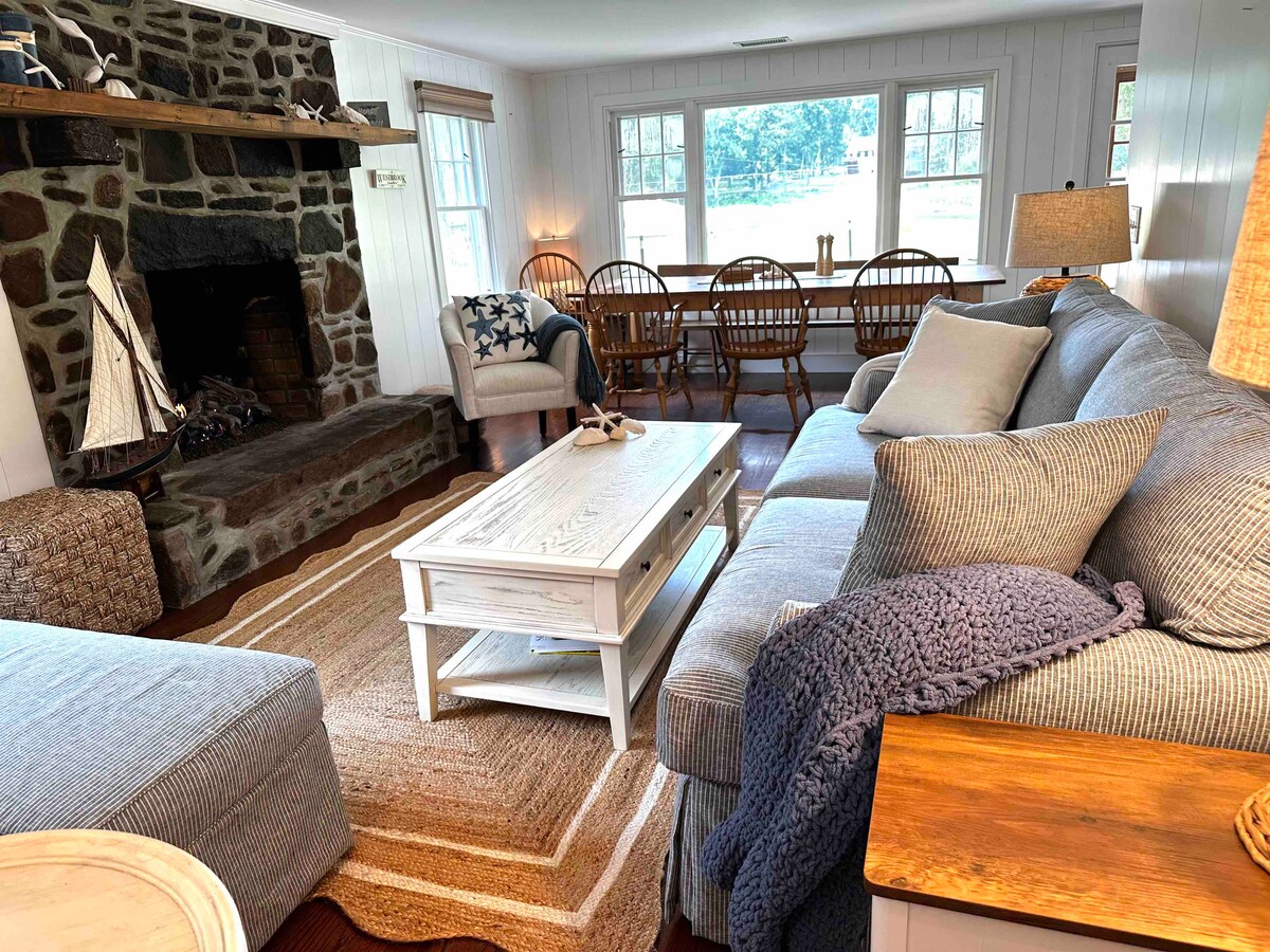 Créez des souvenirs inoubliables au Secret Stone Cottage, votre retraite idéale pour les réunions de famille ou les vacances partagées dans cette ville côtière pittoresque de la Nouvelle-Angleterre à Westbrook, Ct. Profitez de 2200 pieds carrés d'espace de vie niché sur la rivière Patchogue, avec un accès privé au quai de Long Island Sound. Imaginez des soirées passées à faire des grillades près de la cheminée sur le vaste patio, à vous détendre dans le jacuzzi ou à explorer l'eau en kayak et en paddleboard... ou à faire un tour à vélo rapide vers les plages et les restaurants.