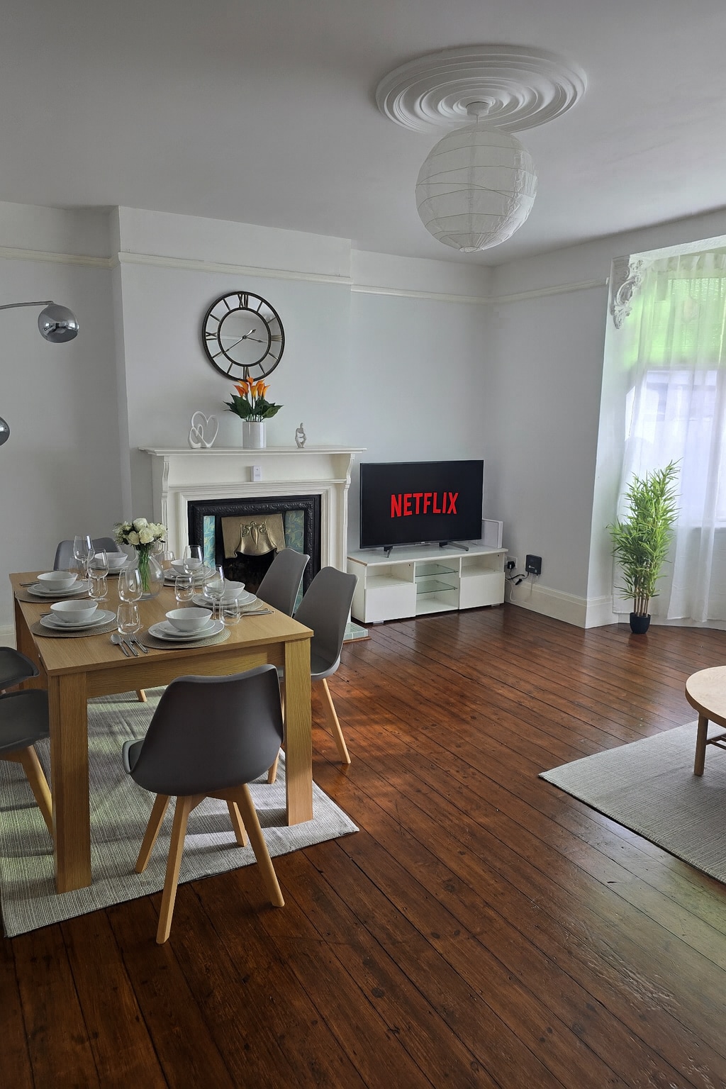 Hébergement chaleureux et lumineux. Capacité d'accueil jusqu'à 5 personnes. Situé au centre. Proche du magnifique parc du prieuré et des superbes jardins, y compris un monastère clunisien du 12e siècle. Le front de mer de Southend avec sa plus longue jetée et Adventure Island sont à moins de 10 minutes en voiture. L'aéroport de Southend est à un arrêt en train. Nous adorons ce quartier, à moins de 5 minutes à pied de la gare avec des liaisons vers la gare de Liverpool Street et des visites touristiques à Londres. Nous pourrions envisager d'accepter des chiens si cela est convenu avant la réservation.