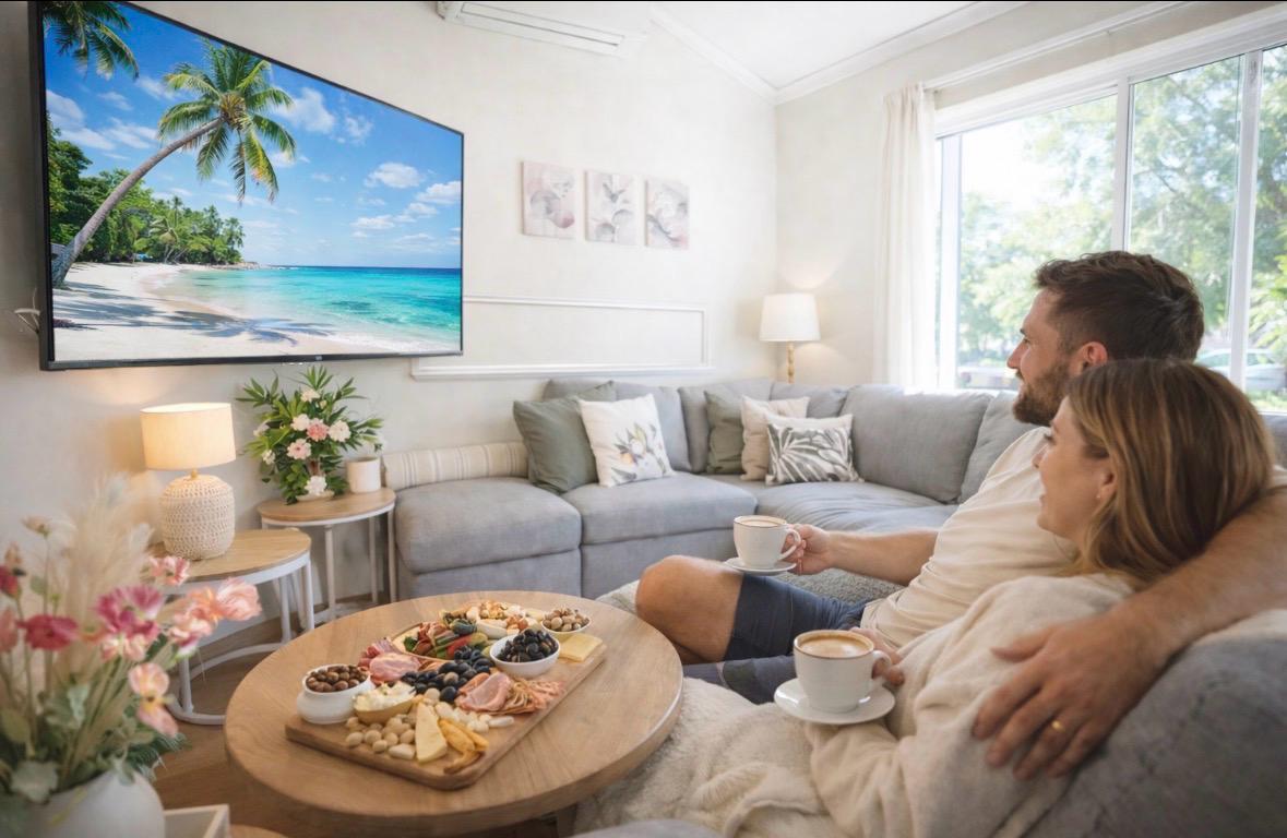 Luxury Lagoon Ocean Escape est un appartement haut de gamme, magnifiquement rénové, à Scarborough Beach, à West Beach Lagoon. 2 chambres, 1 salle de bain, 6 couchages avec canapé-lit. Intérieurs design par Natalia Lopes, avec cuisine complète, salon, salle à manger, buanderie, lit queen size et 2 lits simples et salle de bain moderne avec buanderie. Exceptionnellement aménagé et surplombant la piscine. À quelques pas de la plage, des cafés, des boutiques et du meilleur rivage de WA. Profitez de couchers de soleil glorieux, de la plage et de la brise de l'océan, tout simplement le meilleur endroit pour une escapade côtière à Perth.