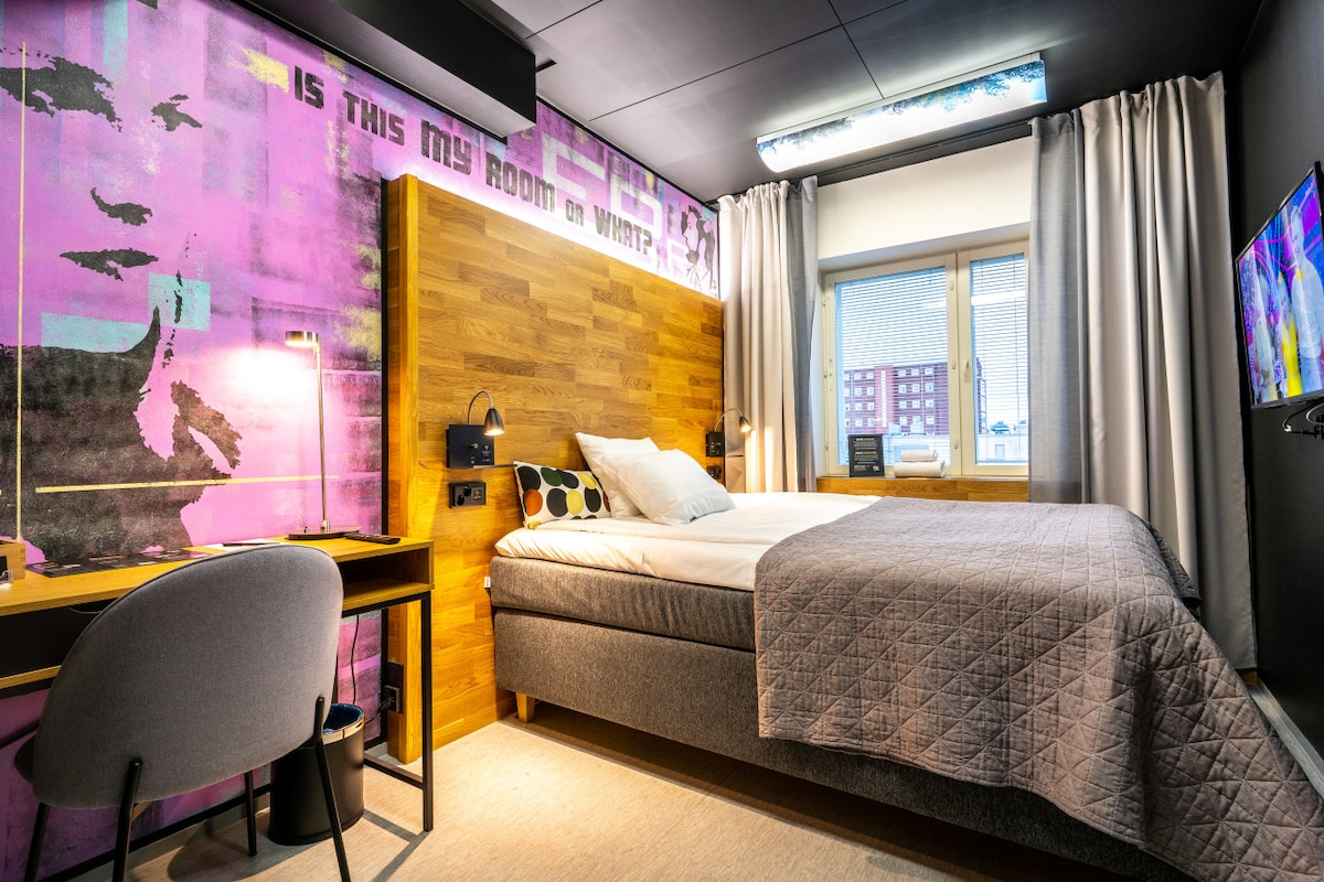 Une mini chambre est un excellent choix pour une ou deux personnes. La mini chambre (6 m²), conçue avec une solution compacte moderne, dispose d'un lit de haute qualité de 140 cm de large. Les chambres disposent de la climatisation, d'une télévision à écran plat, d'un réfrigérateur et d'ustensiles. Vous pouvez cuisiner votre propre nourriture dans des espaces de cuisine communs confortables, disponibles à tous les étages. L'auberge dispose de toilettes communes, de douches, d'un sauna et d'une buanderie propres. Le prix comprend le Wi-Fi, le linge de lit, les serviettes et le nettoyage de fin. Le nouveau système de verrouillage de code facilite l'entrée dans les lieux.