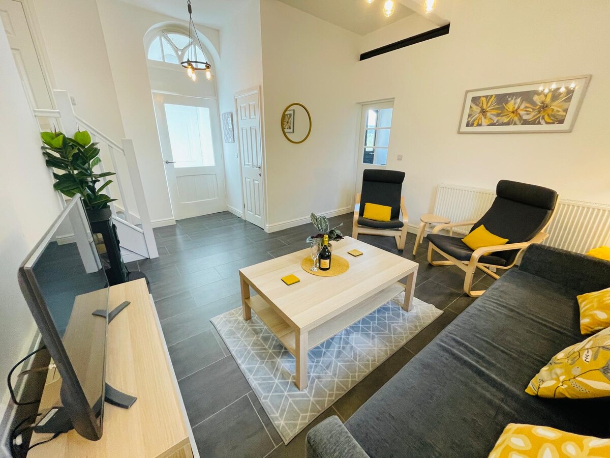 Détendez-vous dans ce logement calme et élégant à la périphérie de New Mills, mais à quelques pas des commodités de la ville et des gares. Appartement au premier étage situé en position élevée surplombant Goytside Meadow. Lit King Size, canapé-lit double dans le salon et salle de bains élégante avec douche et baignoire sur pieds. Petite cuisine avec table et banc pour 4 personnes. Belles vues de toutes les fenêtres. Terrasse surélevée. Téléviseurs dans la chambre et le salon. animaux acceptés Serrure connectée.