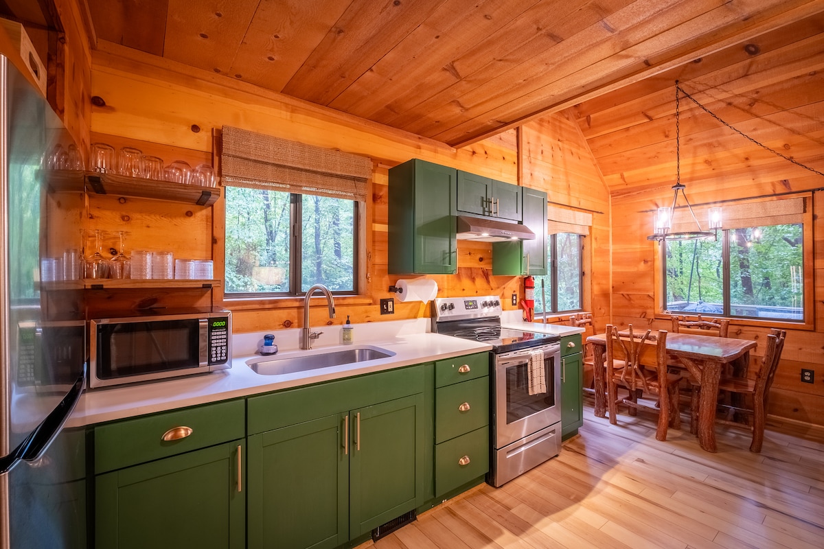Dahlonega,Cleveland,Helen et les vignobles sont tous proches de notre cabane. Il y a également de nombreux lieux de randonnée dans la région. Nous avons la chaleur et l'air central ainsi qu'une cuisine de ferme moderne avec des comptoirs en granit. La salle de bain est également mise à jour avec douche complète. Il y a un porche grillagé et un porche en plein air. Le chalet est situé dans la région viticole et au pied des Appalaches. POINTS D'INTÉRÊT Dahlonega & Helen 11 mi. Vignobles Frogtown, Kaya, Three Sisters à 3 miles Cabbage Patch à 6,4 km.