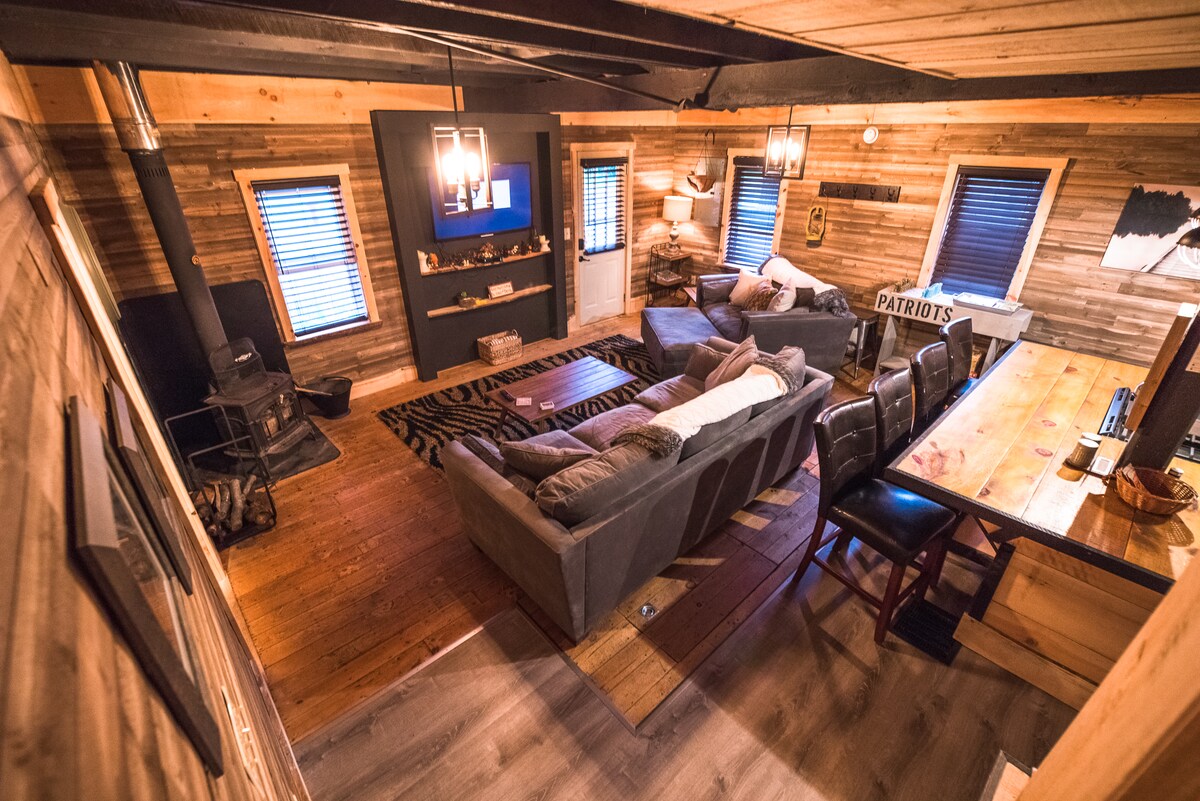 Une expérience inoubliable, créez de nouveaux souvenirs avec votre famille au cœur des montagnes Blanches ! Cette grange à poteaux et poutres unique de 1806 a été déplacée d'Ossipee et transformée en une belle maison de montagne. Avec un espace de vie ouvert, 5 téléviseurs, une table de baby-foot, un terrain de fer à cheval et un salon de billard, vous ne vous ennuierez pas ! Après une longue journée sur les pistes, réchauffez-vous dans le sauna ou profitez de la douche en pierre chauffée personnalisée. Faites griller des hamburgers, préparez des pizzas ou dégustez des s'mores tout en observant les étoiles au coin du feu. Apportez votre chien.