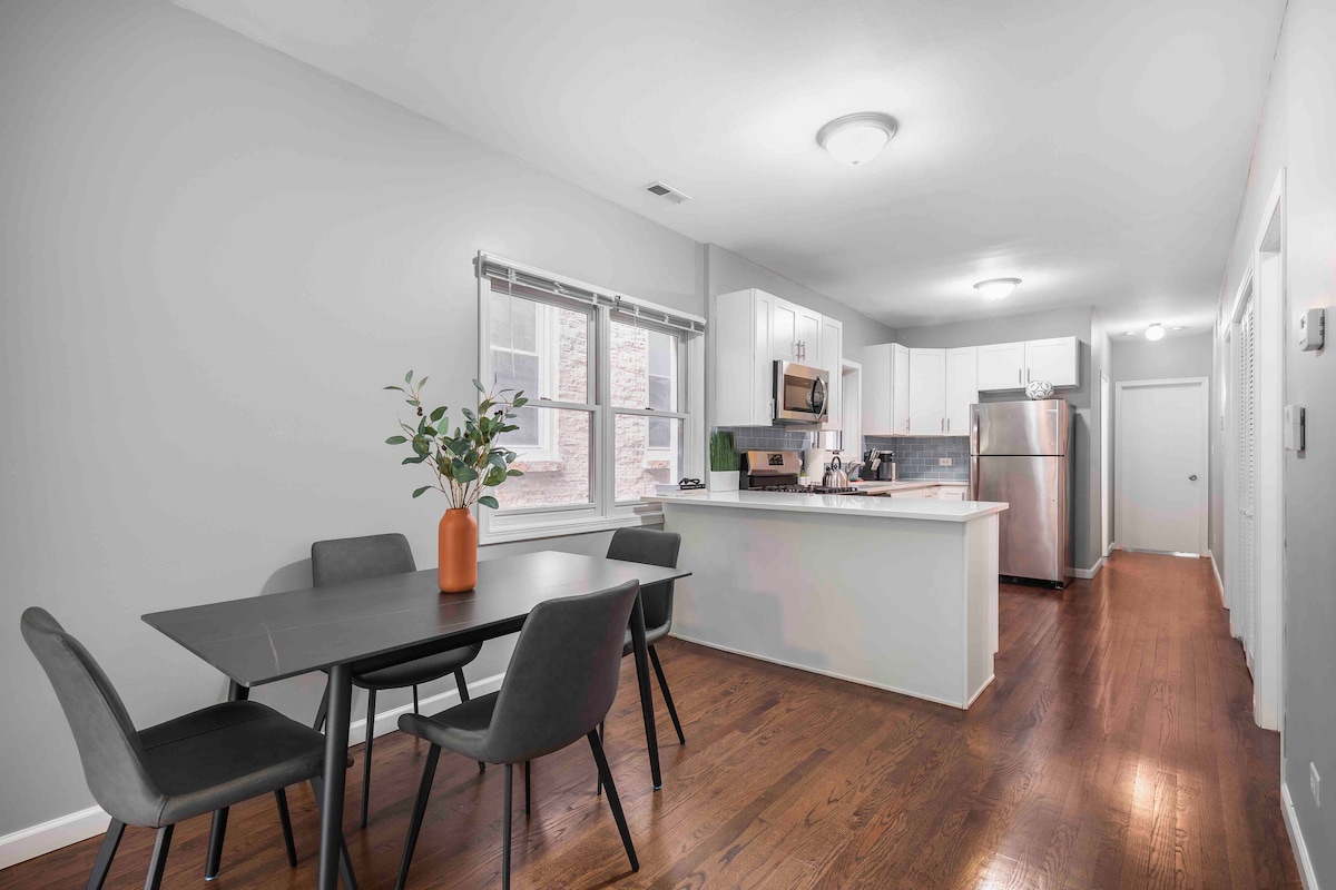 Profitez d'un logement élégant et central. Appartement de 3 chambres et 2 salles de bain entièrement rénové. Bien que situé au calme au 3e étage, vous pouvez sortir de chez vous et accéder à pied à tout ce que Wicker Park et Division Street ont à offrir. Cafés, bars, restaurants illimités, espaces verts, marché fermier, gymnases, épiceries et bien plus encore. Transports en commun faciles et à proximité.