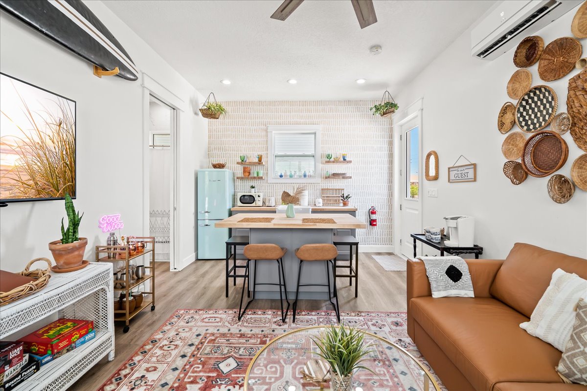 Relax in our cozy tiny home, just 3 miles from the beach! Nestled by historic downtown Eau Gallie Arts District - You'll love this unique and romantic "tiny" getaway. This home features a full kitchen supply with a gas stove, pots and pans.. the whole nine yards. With enough space for 3 guests, there are two lofts (1 queen, 1 loft bed for a small kid, and a nook with a pull out (twin) sectional and small dining counter. The outdoor space has a picnic table, fire-pit and chickens!