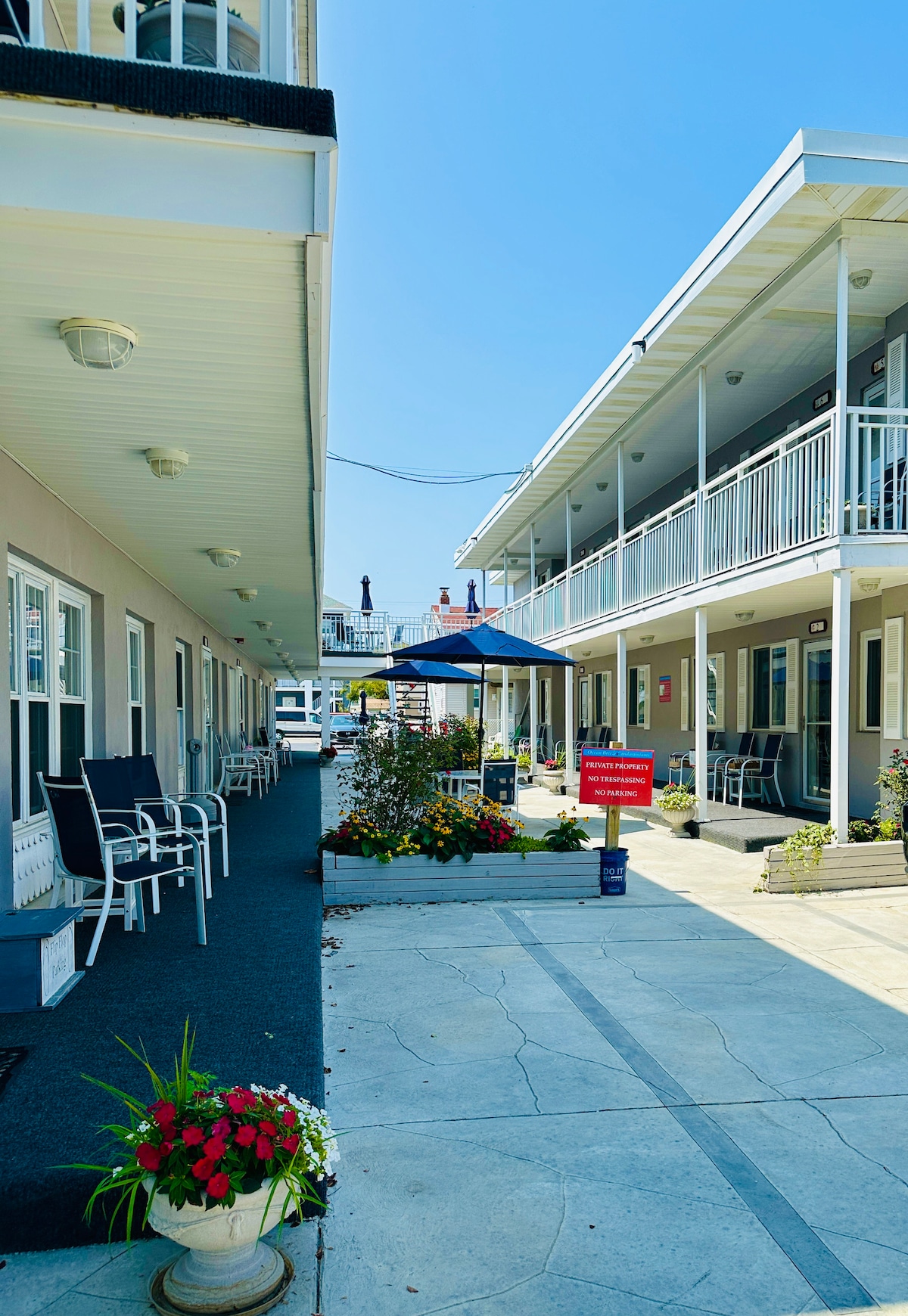 Appartement pittoresque au deuxième étage situé à 3 pâtés de maisons des plages de Wildwood Crest. À l'extérieur, rincez-vous dans la douche extérieure avant de marcher à l'intérieur où l'air central vous gardera au frais après une journée chaude à la plage. Profitez d'une tasse de café sur votre balcon privé au deuxième étage et préparez votre dîner dans notre cuisine entièrement équipée. Détendez-vous dans le salon confortable et passez une bonne nuit de repos dans les chambres équipées de placards et de matelas en mousse à mémoire de forme queen size.
