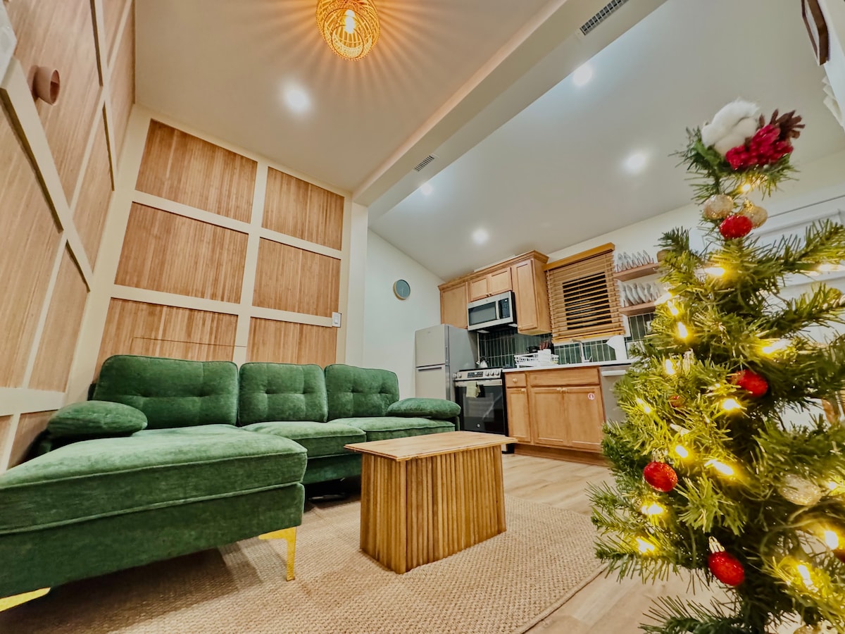 Nous sommes un Airbnb 5 étoiles. Nous avons travaillé dur pour gagner cela et plus dur pour le garder. Notre objectif est de fournir l'expérience la plus propre et la plus belle dans les Wildwood. De beaux couchers de soleil tous les soirs. Les équipements comprennent une cuisine complète, un réfrigérateur à température négative, un lave-vaisselle et tous les ustensiles. Lave-linge et sèche-linge inclus. Chambre principale avec lit King size et douche carrelée privée. Salon avec coin repas. Les deux téléviseurs sont intelligents, Hulu, Netflix, etc.