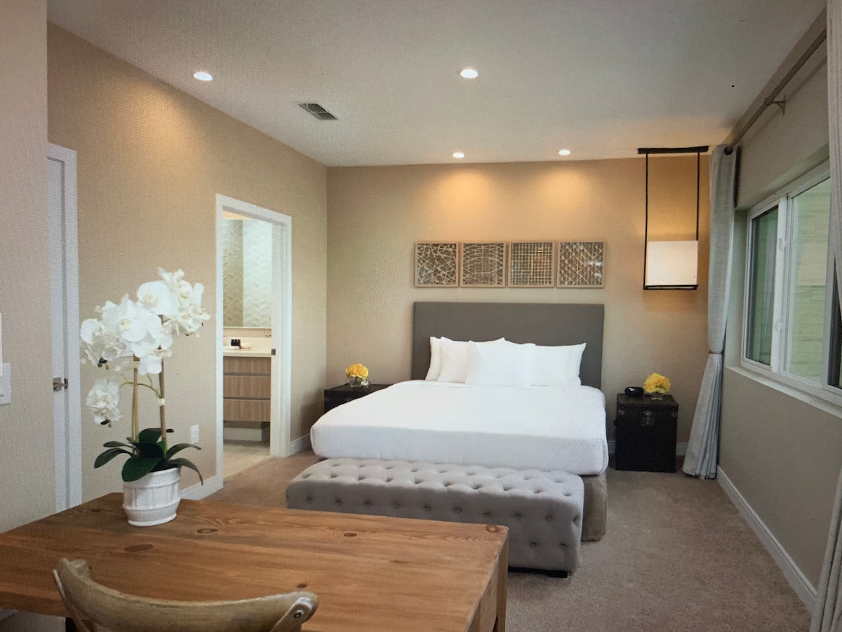 Villa privée avec cour magnifiquement rénovée avec deux suites parentales King. Les deux chambres sont équipées de matelas King Posturepedic Pillow Top et de literie haut de gamme, chacune avec sa propre salle de bain privée et une télévision HD de 32 pouces. IDÉALEMENT SITUÉE dans le quartier De La Vista North entre Spanish Springs et Sumter Landing, qui offrent tous deux des restaurants et des magasins. La propriété est livrée avec 2 voiturettes de golf, ce qui rend les déplacements SUPER faciles et AMUSANTS !