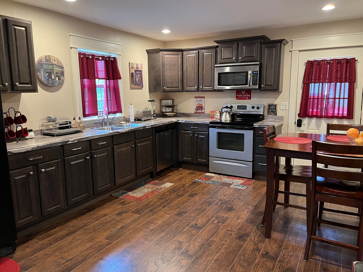 This cute freshly remodeled 1940's home is located in the countryside right at the edge of Springfield, MO. Hike right down the road to the walking trails and scenic views, or drive just 3 mins into town for shopping and business. Located only 15 mins from the airport, 3 minutes from Ozark Empire Fairgrounds and Dickerson Park Zoo! If it is just a place to hang out during a layover or you are in town to visit family or conduct business, we will strive to make your stay as comfortable as home!