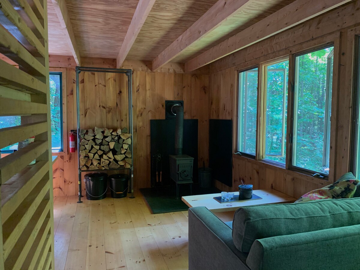 This cabin retreat is situated on a natural clearing in the beautiful Green Mt. Forrest. Surrounded by a dense grove of spruce trees gives you complete privacy. It's only a quick 5 minute drive to great restaurants, breweries, and shops in downtown Wilmington. It's also less than 20 minutes to Mt. Snow. There's great hiking at Molly Stark State Park right across the street and amazing lakes all within a 10 minute drive! No WIFI and cell service is not great so it is a great place to unplug!