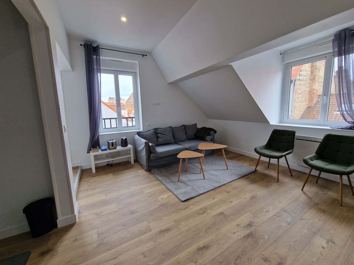 Entrée avec grand séjour comprenant coin salon avec lit banquette double 160 x 200 cm et cuisine ouverte équipée Mezzanine munie d'un lit double de 140 x 190 cm + grand placard de rangement Salle d'eau avec grande douche et WC Terrasse 1 place de parking gratuite (très prisé sur Wimereux!) - Studio très fonctionnel et refait à neuf - Idéalement situé : Accès à la plage à 200 m - Toutes commodités à proximité - A proximité de la gare - Studio calme se trouvant dans cour intérieure