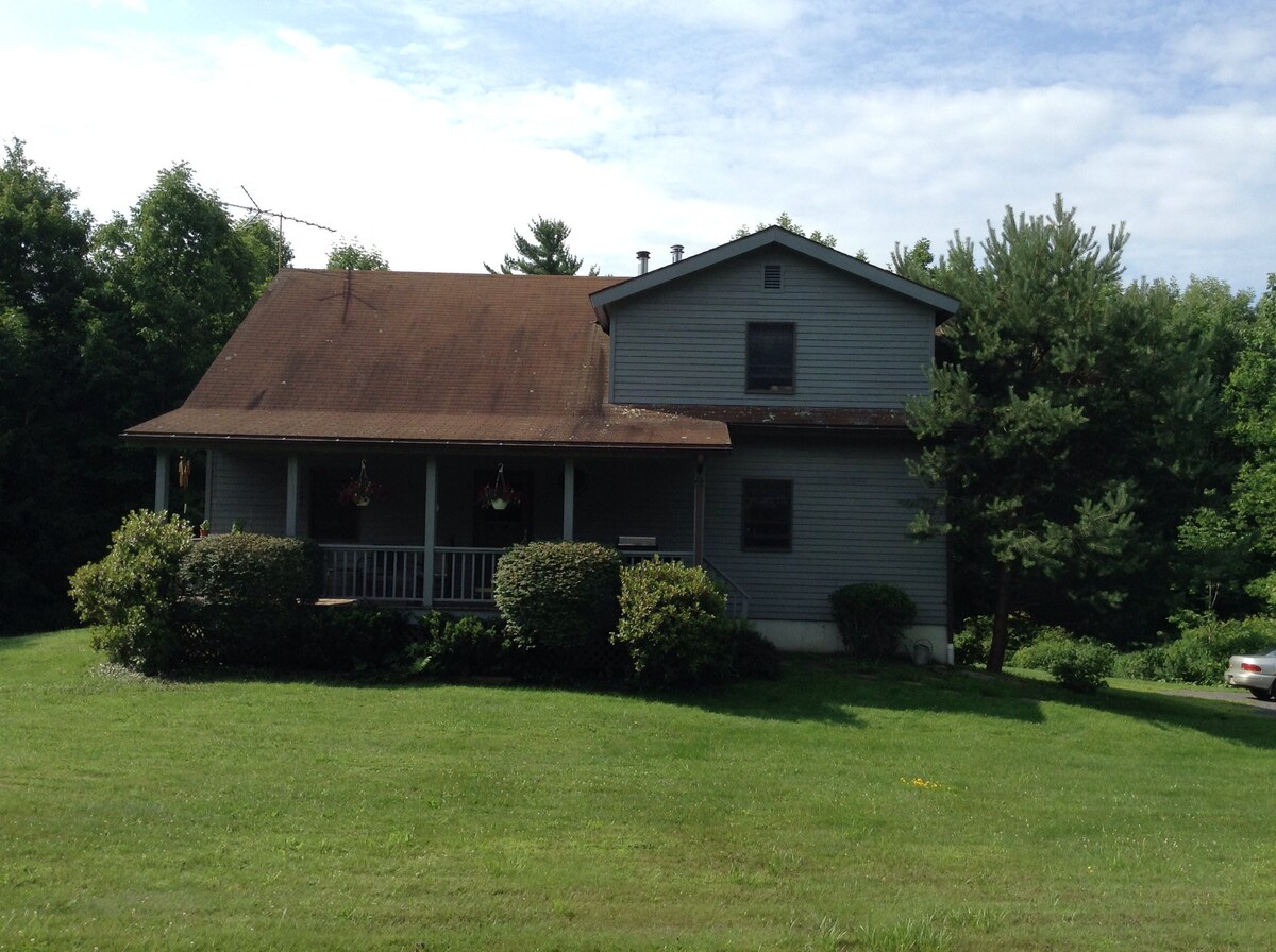 This is a 2 bedroom 1 bath house located just 7 minutes from the Windham ski mountain. The house is surrounded by scenic land with few neighbors to be seen. Skiing, fall foliage, swimming holes, hiking, golf, antiquing, horseback riding, local farms are just a few things to name that this area has to offer. The house itself is a true retreat, you will leave totally re-charged - sweet air, bird chirping, star gazing, grilling, bong fire or simply enjoy a few days of not seeing another soul :)