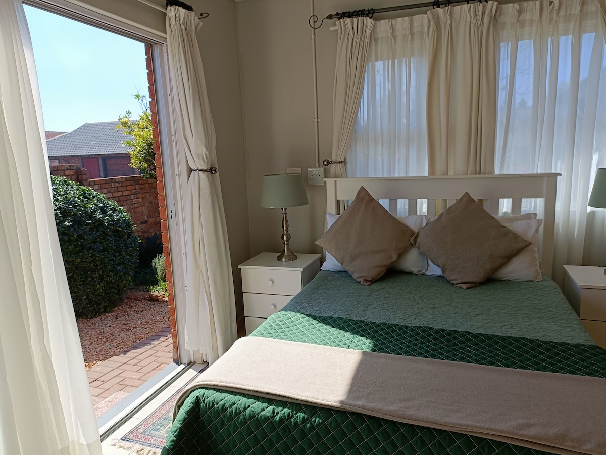 Appartement moderne et rétro dans Moreleta Park. PAS DE COUPURES DE COURANT plus SYSTÈME DE SAUVEGARDE D'EAU. Entrée privée. Havre de paix situé à proximité de l'hôpital de Pretoria East, de Menlyn Maine et de Time Square Arena, de l'hôpital Kloof, de Menlyn et des voies d'accès. Nous fournissons un espace de travail pour ordinateur portable et une connexion Wi-Fi GRATUITE, RAPIDE ET ILLIMITÉE. Patio privé. Système d'alimentation solaire et batterie de secours. Pas d'espaces ou d'installations partagés. Kitchenette privée dans le logement. Les voyageurs de long séjour peuvent cuisiner dans la cuisine de la maison principale sur arrangement.
