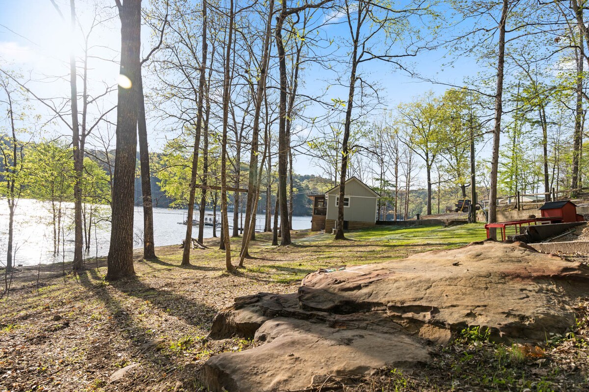 Découvrez l'ultime escapade au bord du lac Alabama à Paradise Point, une magnifique cabane au bord du lac Smith où le luxe moderne rencontre la tranquillité naturelle. Profitez d'une vue panoramique sur le lac, pêchez, faites du kayak ou du paddleboard directement depuis votre quai privé. Détendez-vous sur la terrasse spacieuse, rassemblez-vous autour du foyer ou imprégnez-vous simplement de l'environnement serein. Parfait pour les familles, les couples et les groupes, ce havre de paix en bord de mer offre le mélange idéal d'aventure et de détente.