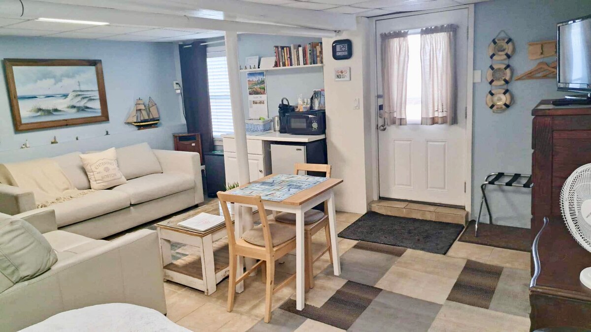 Découvrez la tranquillité de notre suite moderne avec vue imprenable sur l'océan et terrasse privée donnant sur l'Atlantique. Réveillez-vous avec des levers de soleil à couper le souffle et détendez-vous au coin du feu. Dispose d'une cuisine entièrement équipée avec des sièges sur l'îlot, un lit Queen Size confortable, un canapé convertible moelleux et une salle de bain luxueuse. À quelques minutes de Boston, profitez de la vie en bord de mer, idéale pour les escapades romantiques, les retraites paisibles ou les voyageurs d'affaires. Réservez dès maintenant pour profiter pleinement de la vie en bord de mer !