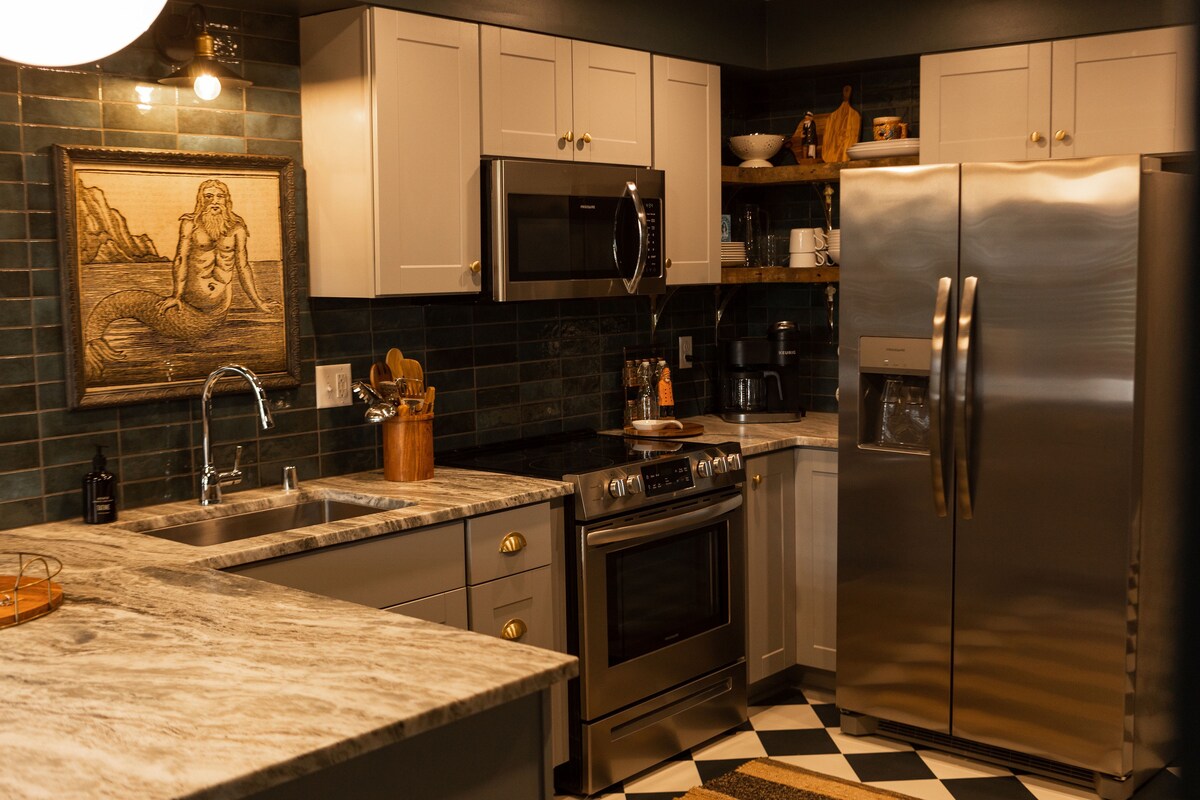 Entrez et laissez-vous accueillir par un espace de vie élégamment décoré qui respire le charme contemporain. L'aménagement ouvert combine harmonieusement les espaces salon, salle à manger et cuisine, créant une atmosphère spacieuse et accueillante. Détendez-vous sur le canapé confortable tout en profitant de l'élégante télévision à écran plat 55', ou rassemblez-vous autour de la table à manger avec vos amis et votre famille. À distance de marche des musées, du centre-ville, de la rivière et plus encore !