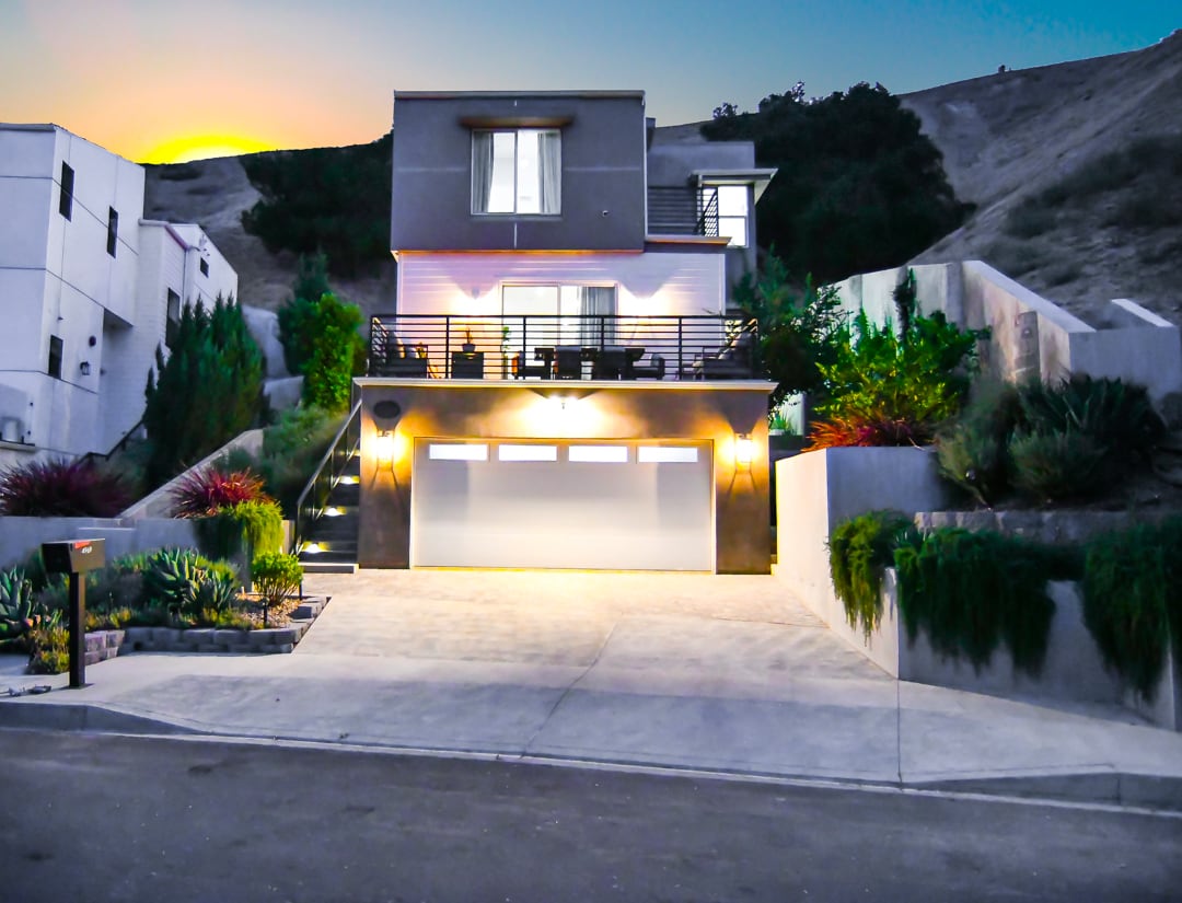 Élégante maison contemporaine unique en pente dans un quartier calme. Patio de 2600 pieds carrés avec tout le mobilier neuf, pergola, entouré d'une clôture en bambou, palmiers, lumières colorées Cette maison est pour les séjours, PAS pour les fêtes ou les événements. * Consultez les prix pour les voyageurs supplémentaires Seulement les voyageurs avec deux commentaires 5 étoiles minimum Capacité d'accueil : 10 personnes maximum avec 5 lits. Pour plus de 3 chambres, prévenez à l'avance. Les voyageurs disposent de la maison entière, du patio et de l'allée, et je maintiens un studio dans l'unité inférieure avec une entrée indépendante.