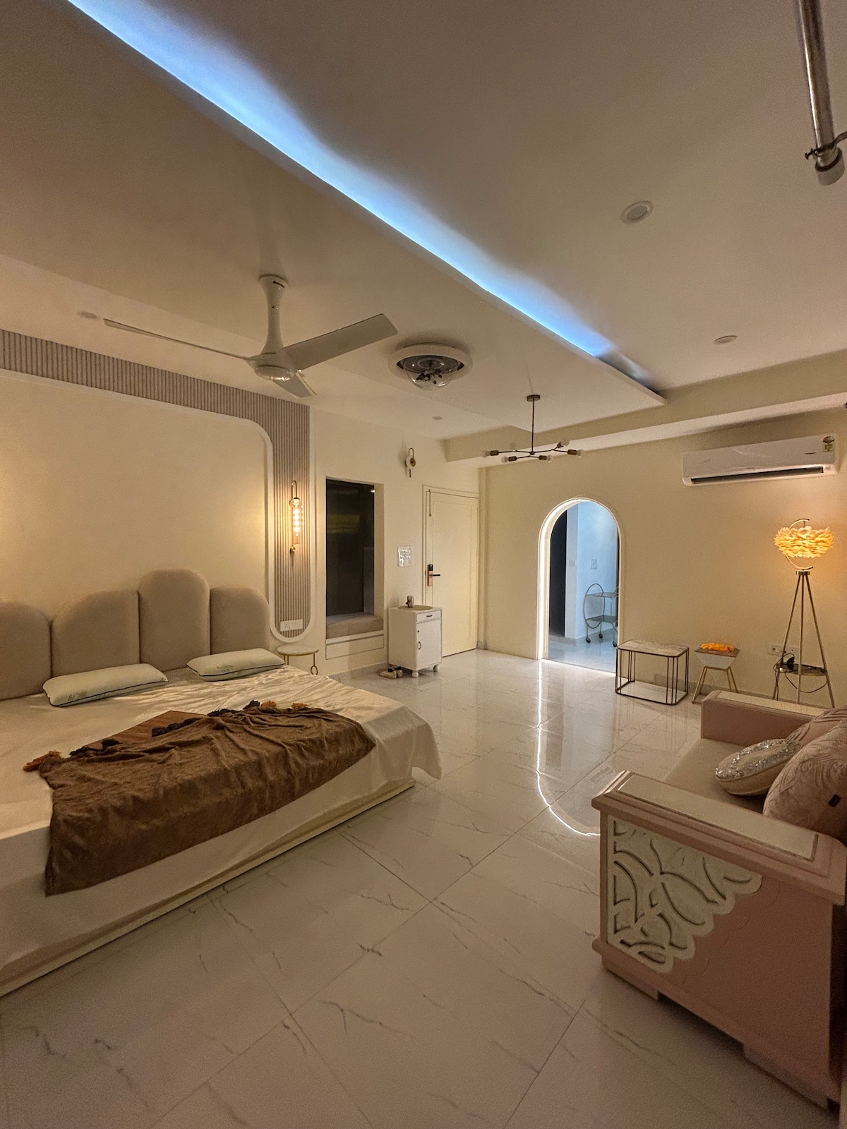 Présentation de notre magnifique studio de luxe : Niché au cœur de la ville, ce studio opulent bénéficie d'une élégance moderne et d'un confort inégalé. Le concept à aire ouverte vous invite dans un havre de paix spacieux, baigné de lumière naturelle grâce aux grandes fenêtres qui offrent une vue imprenable sur la ville. Cet appartement est situé au 41e étage de l'un des plus hauts gratte-ciel de Delhi - NCR. L'appartement dispose d'une vue sur la rivière depuis le balcon !!