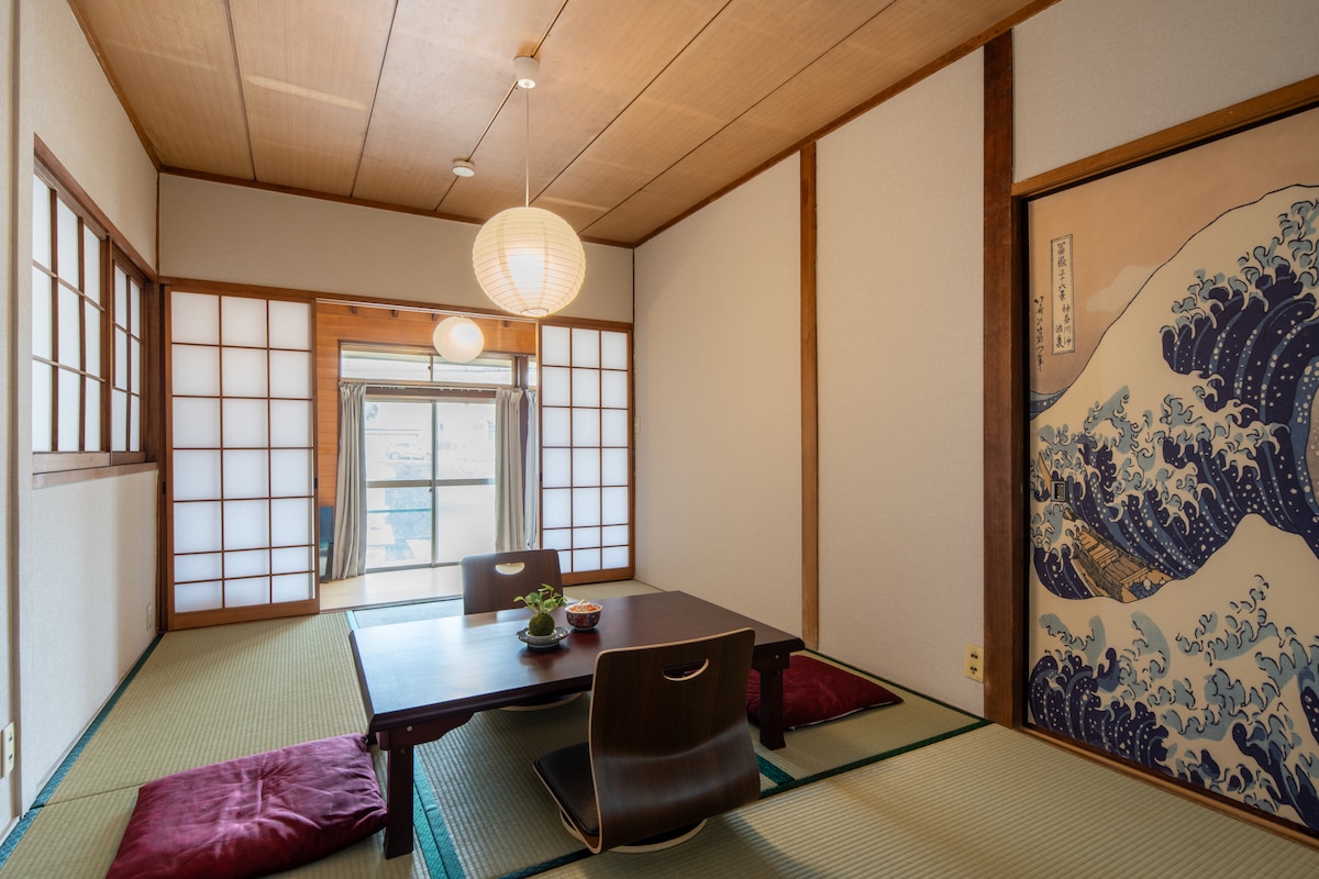 日本の伝統美を感じるリノベーション古民家を一棟貸切。 最大10名まで宿泊可能で、家族やグループ旅行に最適。 畳の温もりとモダンな設備で快適に滞在できます。 快適な空間 ・58㎡・3ベッドルーム:人数でもゆったり ・全室エアコン完備:一年中快適 ・和モダンデザイン:畳で日本らしい滞在 ・完全プライベート:他のゲストと共有なし 抜群のアクセス ・京成大和田駅(徒歩11分) ・成田空港から直通40分 – 海外旅行者に便利 ・東京/浅草/スカイツリー/ディズニーランドへ好アクセス 周辺施設(徒歩圏内) ・セブンイレブン(7分):24時間営業 ・コインランドリー(5分):長期滞在向き ・地元の名店「うなぎ・せきのう」(6分) ・スーパー「ビッグ・エー」(10分):自炊に便利 主要観光地へのアクセス(電車) ・スカイツリー:40分 ・浅草:45分(浅草寺/仲見世通り) ・ディズニーランド:50分 ・上野/東京駅:50~55分 ・渋谷/新宿:約1時間10分 ご注意 ・駐車場なし →最寄駅前のコインパーキングをご利用ください 和の趣あふれる空間で特別な滞在を。 ご宿泊をお待ちしております。