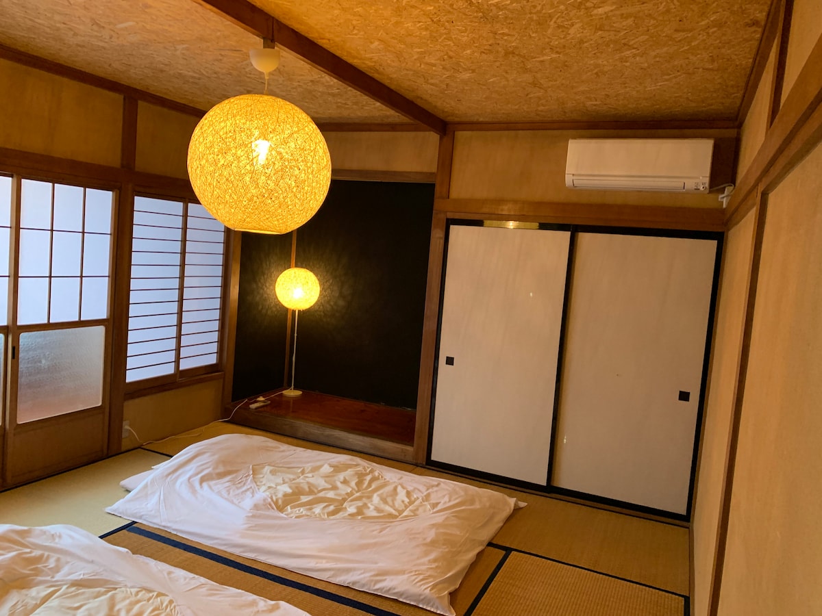« En » est une ancienne maison privée située à 7 minutes en voiture de la gare du mont Fuji. Toutes les chambres sont de style japonais, et le grand balcon offre une vue magnifique sur le mont Fuji. Nous proposons un service de navette gratuit vers la gare Fuji. Salle de bain et toilettes partagées.Climatisation gratuite, wifi, thé, serviettes, brosses à dents, shampoing et sèche-cheveux gratuits.Il y a environ 6 des meilleurs restaurants de sushis, restaurants yakiniku et boutiques de ramen de la ville.Vous y trouverez également un arrêt de bus urbain à environ 3 minutes à pied, donc c'est très pratique.Nous devons vérifier votre identité (avec une photo) à l'arrivée. Veuillez donc coopérer.