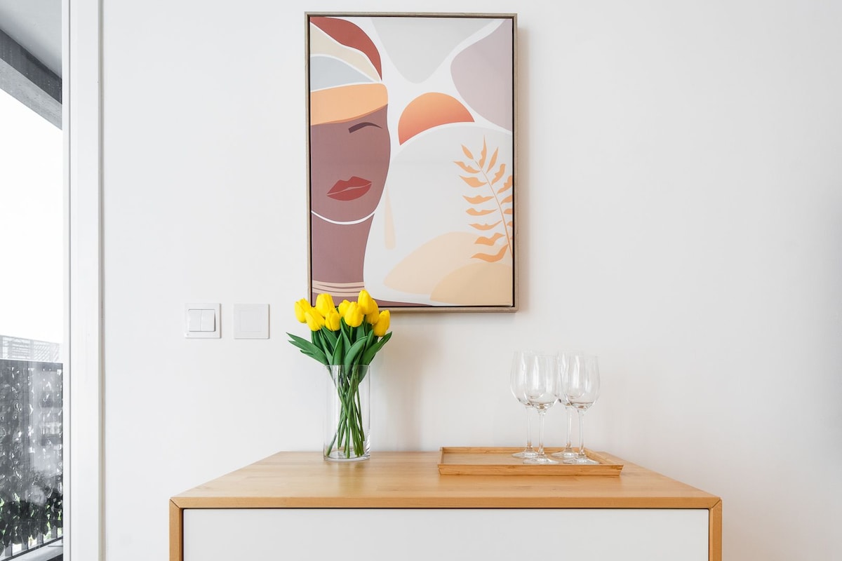 Superbe appartement de luxe au dernier étage avec vue sur l'eau ! Parfait pour les couples ou les voyageurs d'affaires, cette retraite magnifiquement décorée offre un décor élégant et moderne avec une vue imprenable sur l'eau. Situé au cœur de la ville, à proximité du centre d'affaires, des commerces et des transports, vous profiterez du meilleur de la commodité urbaine tout en vous évadant vers une oasis paisible pour une nuit de sommeil réparatrice. Idéal pour les séjours plus longs, avec tous les équipements nécessaires pour le confort. Réservez maintenant pour vivre l'expérience ultime de la ville !