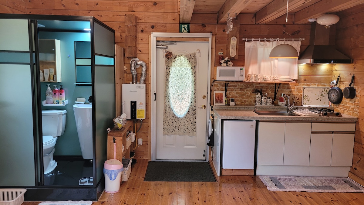 Notre maison est située près de Taewasang, Yeongwol, province de Gangwon, et se trouve à 15 minutes en voiture de Cheongryongpo, Jangneung, Gosi Cave, Dongseo Garden Yeondangwon, Radio Star Museum, Photo Museum et Bieulmaro Observatory (où vous pouvez prendre une navette). Il se trouve à 25 minutes de la péninsule coréenne et à 35 minutes du Youth Moon Y Park. Les familles avec enfants peuvent accueillir jusqu'à 4 personnes et jusqu'à 3 adultes. C'est une villa de style loft, et vous pourrez profiter de la cheminée intérieure de l'automne au printemps, et vous pourrez vous asseoir dans le jardin devant l'hébergement et le barbecue avec une atmosphère relaxante. Nous exploitons deux espaces indépendants. Nous accueillons ceux qui veulent se détendre. * Service de ramassage gratuit * Service de barbecue gratuit * Bois de chauffage disponible * La cheminée intérieure fonctionne d'octobre à mars * Recharge de véhicules électriques disponible * Logement à moitié prix pour les voyageurs à Yeongwol-gun (Happy Homestay)
