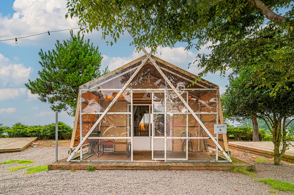 Oubliez le stress du quotidien sous le ciel nocturne étoilé.Un paradis calme et bienveillant dans la forêt où vous pourrez échapper à la vie quotidienne trépidante et rêver d'un moment de guérison Profitez des sons de la nature lorsque vous séjournez dans cet endroit unique. Le glamping est aussi pratique qu'un hôtel, vous pourrez profiter pleinement de la joie du camping. Vous pouvez également déguster un barbecue au charbon de bois directement dans une prairie spacieuse de 10 000 pyeong à 400 mètres d'altitude au milieu de l'île de Jeju, afin de pouvoir la déguster, profiter du brasero tranquille et vous immerger dans la nuit bleue de Jeju. Créez des souvenirs inoubliables en regardant la plage d'Aewol et la plage de Hallim au loin ~ ~ Surtout en semaine, vous pouvez profiter d'un moment plus calme et plus privé à un prix plus bas.